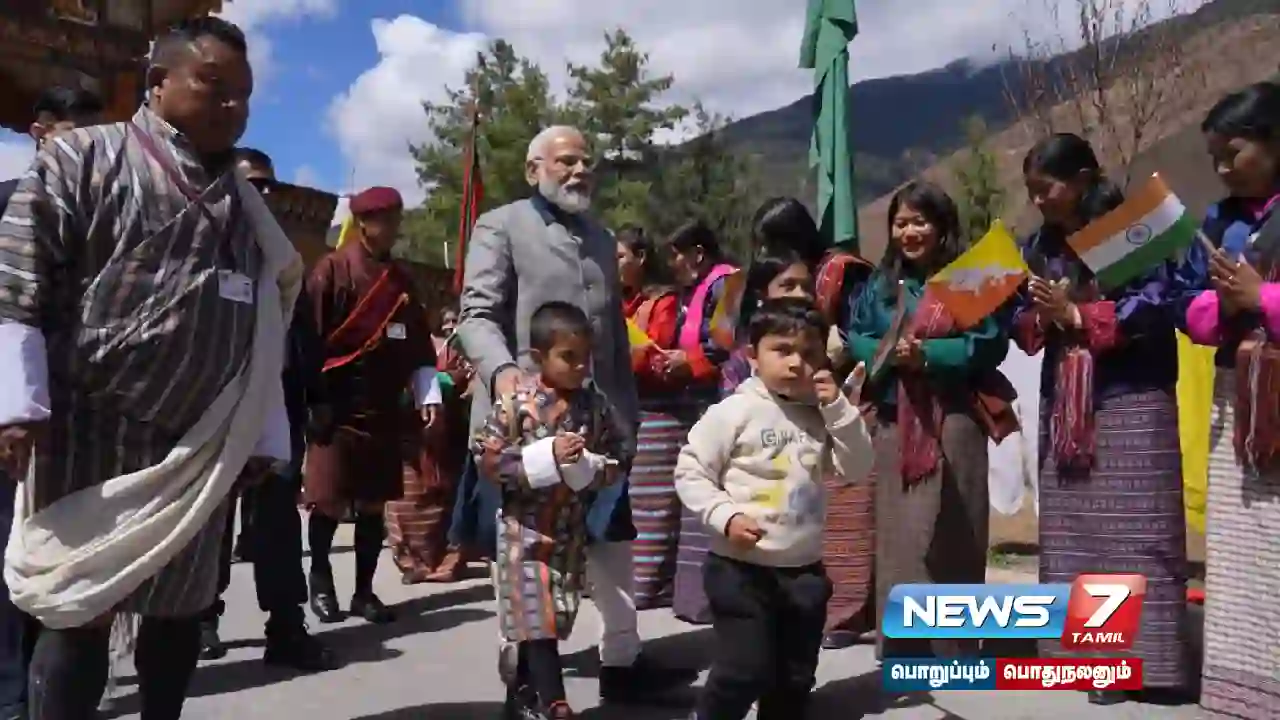 2 நாட்கள் பயணமாக பூடான் சென்றுள்ள பிரதமர் மோடிக்கு அந்நாட்டு பாரம்பரிய முறைப்படி உற்சாக வரவேற்பு அளிக்கப்பட்டது.