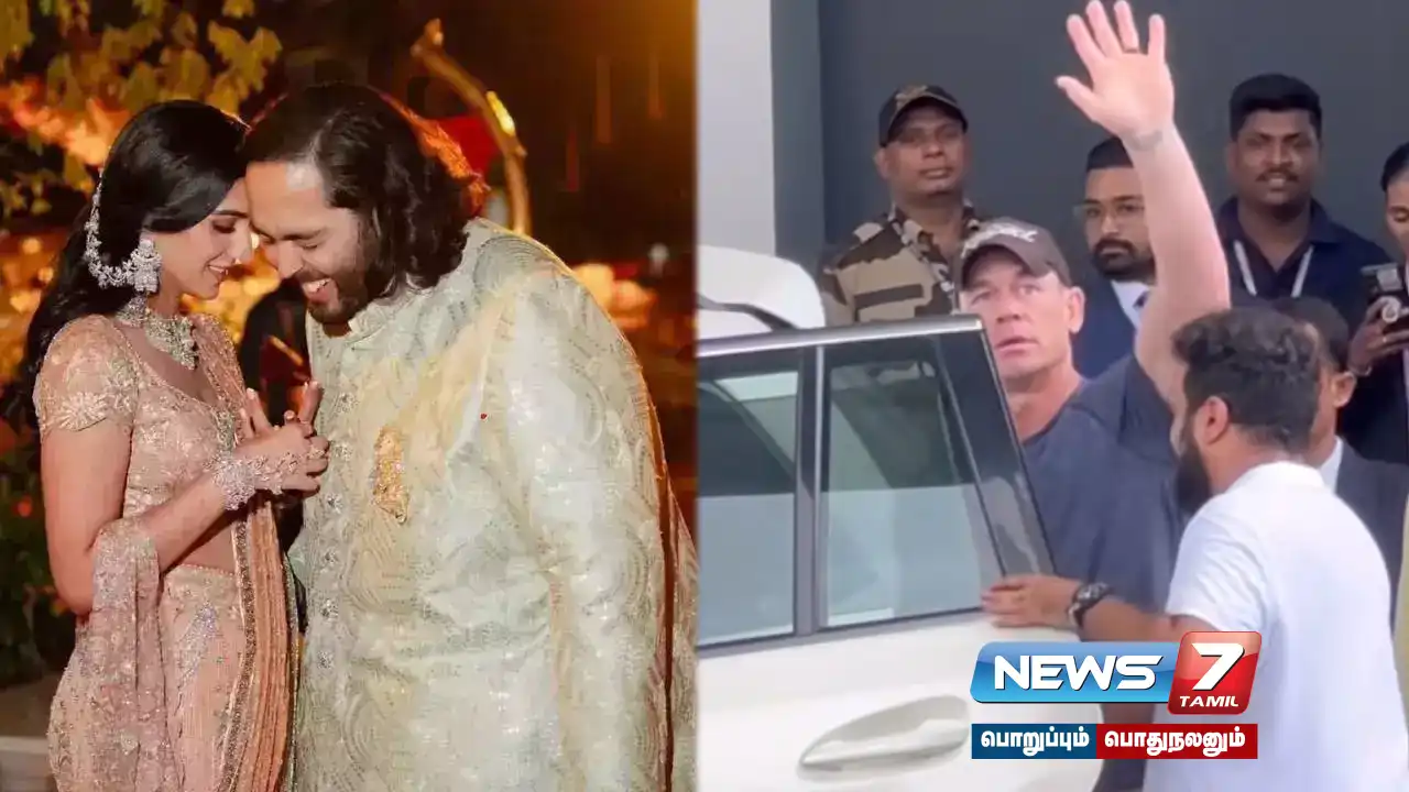 இந்நிலையில் ஆனந்த் அம்பானி திருமண நிகழ்வில் கலந்துகொள்ள பிரபல பாலிவுட் நடிகர் ஜான் சீனா இந்தியா வந்துள்ளார். அவருக்கு ரசிகர்கள் உற்சாக வரவேற்பு அளித்தார்கள். இது தொடர்பான புகைப்படங்கள் மற்றும் வீடியோக்கள் சமூக வலைதளங்களில் வைரலாகி வருகிறது. இன்று இருவருக்கும் திருமணம் நடைபெற்று முடியும் நிலையில், அடுத்ததாக நாளை (ஜூலை 13) ‘மங்கள் உத்சவ் விழா’ மற்றும் ஜூலை 14 அவர்களின் திருமண வரவேற்பு விழாவும் நடைபெற இருப்பது குறிப்பிடத்தக்கது.