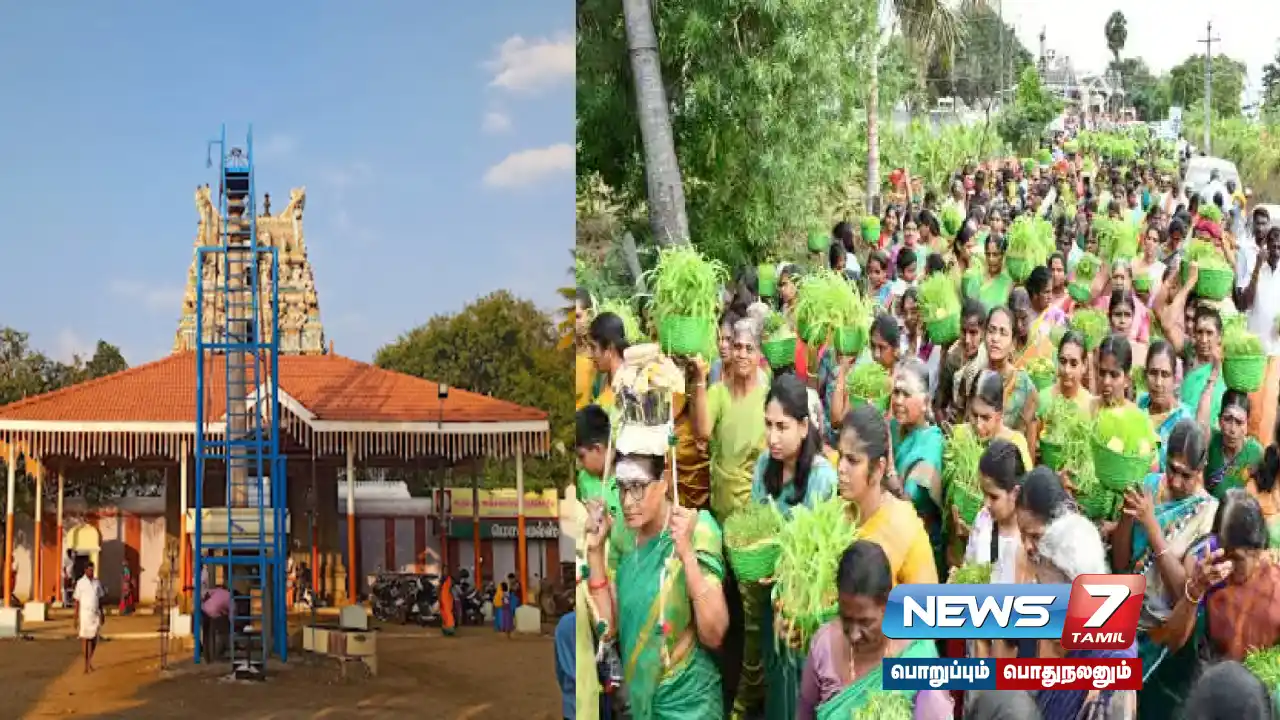 இந்த கோயிலில் கடந்த 20 ஆண்டுகளுக்கு முன்பு கும்பாபிஷேகம் நடைபெற்ற நிலையில் தற்போது மீண்டும் கோவில் புனரமைக்கப்பட்டு கோவில் கும்பாபிஷேகம் வரும் ஆறாம் தேதி நடைபெற உள்ளது. இந்த நிலையில் கும்பாபிஷேகத்தின் முதல் நாளான இன்று 5 ஆயிரத்துக்கு மேற்பட்ட பெண்கள் பல்வேறு பகுதிகளில் இருந்து அம்மனுக்கு சீர்வரிசை தட்டுகளுடனும், முளைப்பாரி, தீர்த்த கூடங்களை பஞ்ச வாத்தியங்களுடன் கோவிலுக்கு ஊர்வலமாக வந்து சாமி தரிசனம் செய்தனர்.