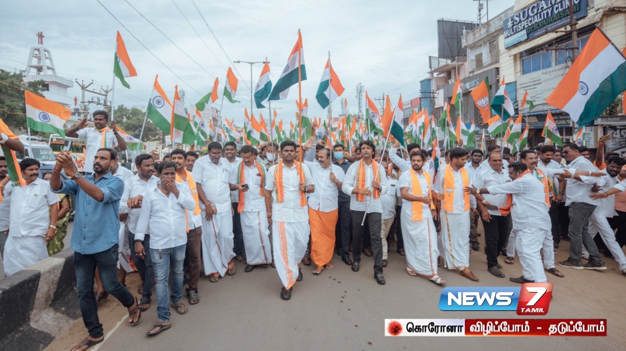 ஆவடி மாநகராட்சி அலுவலகம் அருகில் தொடங்கிய இந்த பேரணியில் சுமார் ஐந்து கிலோ மீட்டர் தூரம் வரை ஆயிரத்துக்கும் மேற்பட்ட பாஜக தொண்டர்கள் இந்திய தேசியக் கொடிய கைகளில் ஏந்தி ஊர்வலமாக சென்றனர். பேரணி இறுதியாக காமராஜர் சிலைக்கு மாலை அணிவித்து நிறைவு பெற்றது.