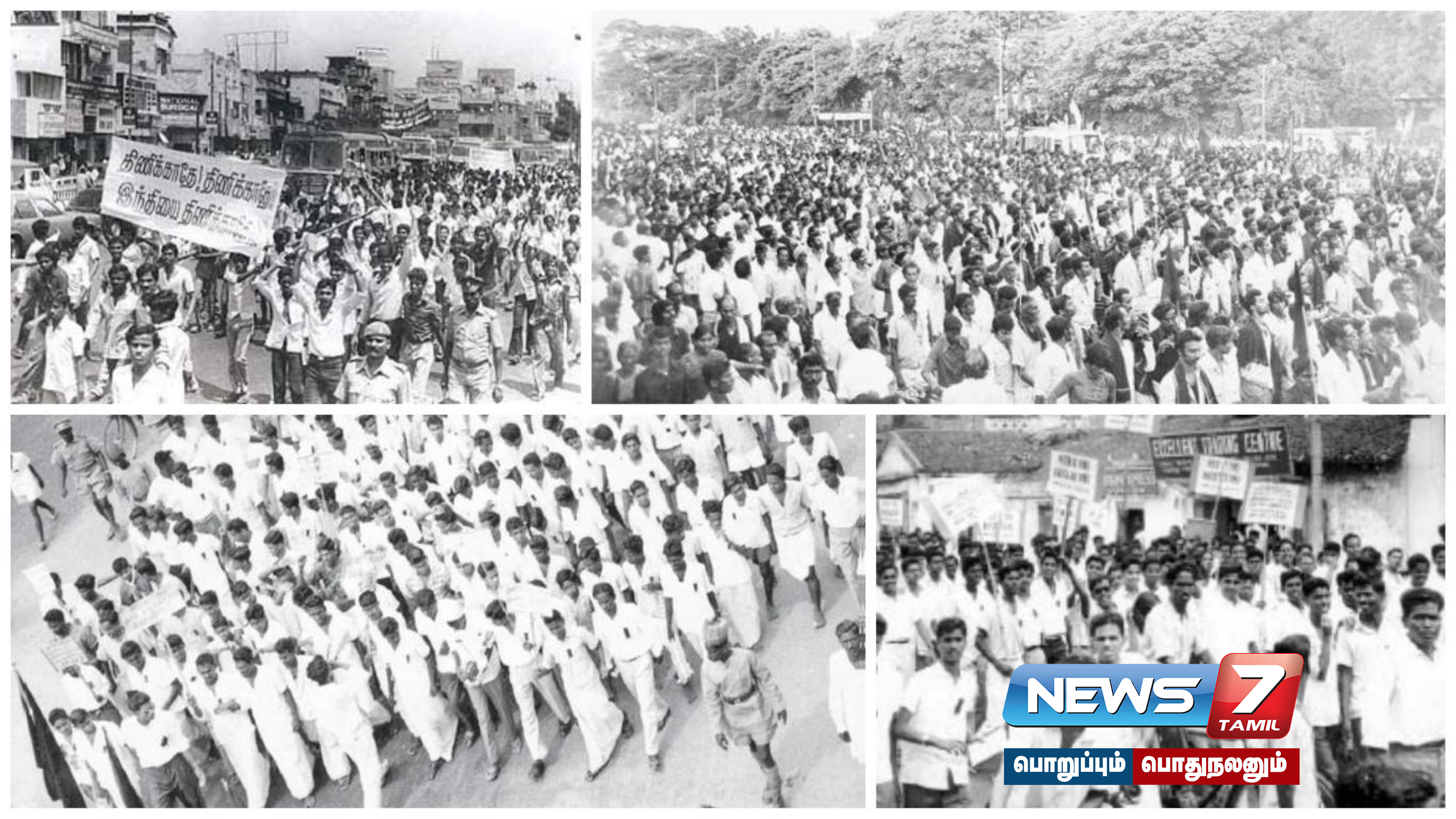 இந்தியாவில் மொழிவாரி மாநிலங்கள் 1956ம் ஆண்டு நவம்பர் 1ம் தேதி உருவாக்கப்பட்டு, 60 ஆண்டுகளுக்கு மேலாகிறது. இந்தி பேசாத மாநிலங்கள் விருப்பத்திற்கு மாறாக இந்தி திணிக்கப்படாது என்று இந்தியாவின் முதல் பிரதமர் ஜவர்கலால் நேருவும் உத்தரவாதம் அளித்துள்ளார். ஆனாலும் இந்தி திணிப்பு அச்சமும் அதற்கு எதிரான போராட்டங்களும் இப்போதும் தொடர்ந்து கொண்டுதான் இருக்கின்றன. இதற்கு முந்தைய போராட்டங்களைப் பார்க்கலாம்…