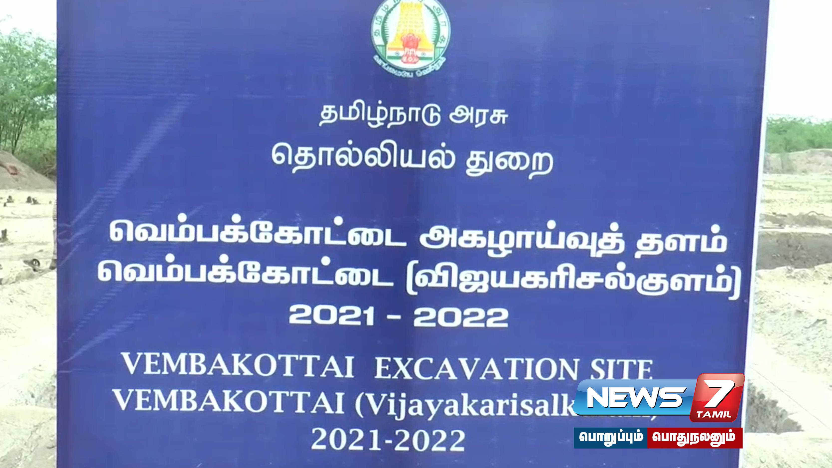 பண்டைய கால நுணுக்கமான வேலைப்பாடுகளுடன் கூடிய சுடுமண்ணால் ஆன முத்திரைக் கருவி உலோக காசுகள் முழுமையான வளையல்கள் வெம்பக்கோட்டை அகழாய்வில் கண்டறியப்பட்டது.