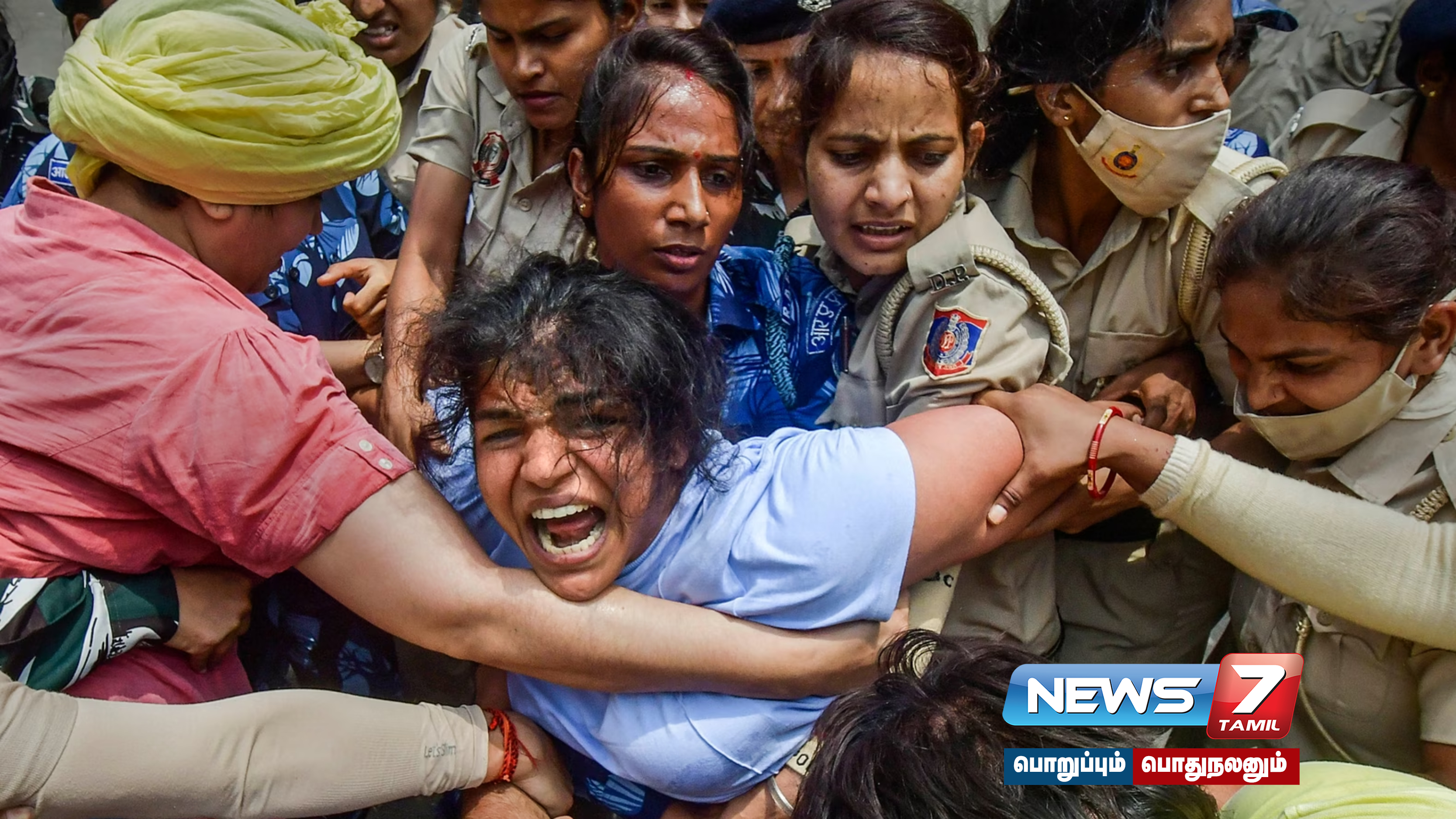 இந்திய மல்யுத்த கூட்டமைப்பின் முன்னாள் தலைவரும், பாஜக எம்பியுமான பிரிஜ் பூஷன் சரண் சிங் மல்யுத்த வீராங்கனைகளுக்கு பாலியல் தொல்லை கொடுத்ததாக புகார் எழுந்த நிலையில், அவர் மீது உரிய நடவடிக்கை எடுக்கக்கோரி முன்னணி மல்யுத்த வீராங்கனைகள் வினேஷ் போகத், சாக்ஷி மாலிக், சங்கீதா போகத் மற்றும் மல்யுத்த வீரர் பஜ்ரங் புனியா உள்ளிட்டோர் டெல்லி ஜந்தர் மந்தர் பகுதியில் தொடர் போராட்டத்தில் ஈடுபட்டு வருகின்றனர்.