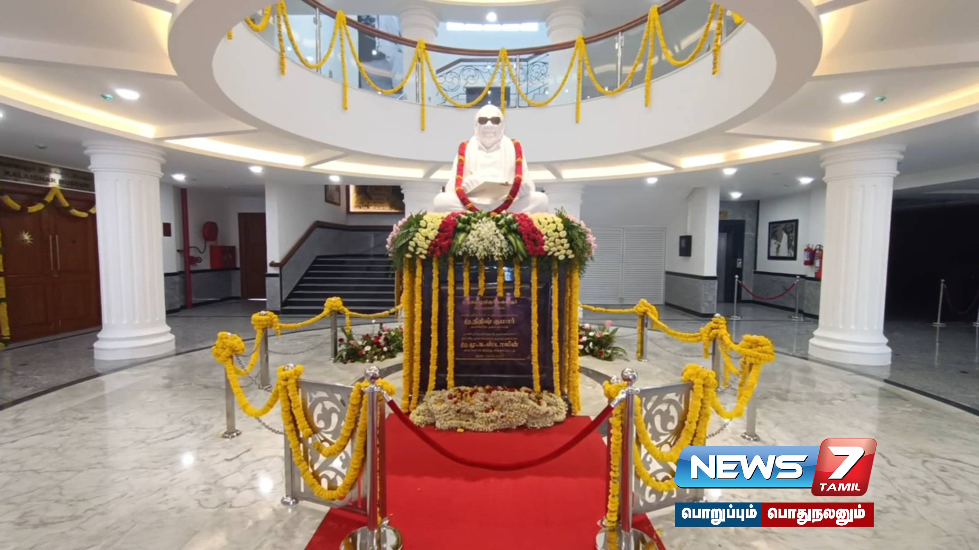 திருவாரூர் அருகே காட்டூர் கிராமத்தில் மறைந்த திமுக தலைவர் கருணாநிதிக்கு தயாளு அம்மாள் அறக்கட்டளை சார்பில் ரூ.12 கோடி மதிப்பில் 7 ஆயிரம் சதுரஅடி பரப்பளவில் கலைஞர் கோட்டம் கட்டப்பட்டது. இதனை நேற்று தமிழ்நாடு முதலமைச்சர் மு.க.ஸ்டாலின் திறந்து வைத்தார்.