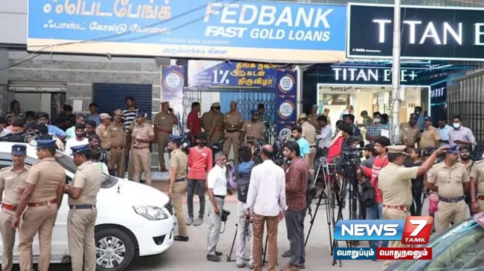 சென்னை அரும்பாக்கத்தில் பெடரல் வங்கிக்கு சொந்தமான நகைகடன் பிரிவு அலுவலகத்தில் இருந்து கடந்த 13ம் தேதி 15 கோடி ரூபாய் மதிப்பிலான சுமார் 32 கிலோ தங்கம் கொள்ளையடிக்கப்பட்டது. பட்டப்பகலில் நடந்த இந்த சம்பவம் தமிழ்நாடு முழுவதும் பெரும் அதிர்வலைகளை ஏற்படுத்திய நிலையில் வங்கியின் முன்னாள் ஊழியரான முருகன் என்பவர் இந்த கொள்ளை சம்பவத்தில் முக்கிய குற்றவாளி என்பது விசாரணையில் தெரியவந்துள்ளது. இக்கொள்ளை சம்பவத்தில் ஈடுபட்டவர்களை தமிழக காவல்துறை தனிப்படை அமைத்து பிடித்து விசாரணை நடத்தி வருகிறது.