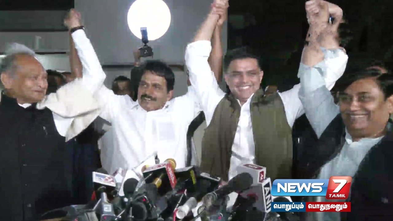 ராஜஸ்தான் காங்கிரசில் முதலமைச்சர் அசோக் கெலாட்டிற்கும், முன்னாள் மத்திய அமைச்சர் சச்சின் பைலட்டிற்கும் இடையே இருந்த மோதல் முடிவுக்கு வந்துள்ளது. நீண்ட நாளைக்கு பின்னர் இருவரும் இணைந்து இன்று செய்தியாளர்களை சந்தித்தனர்.