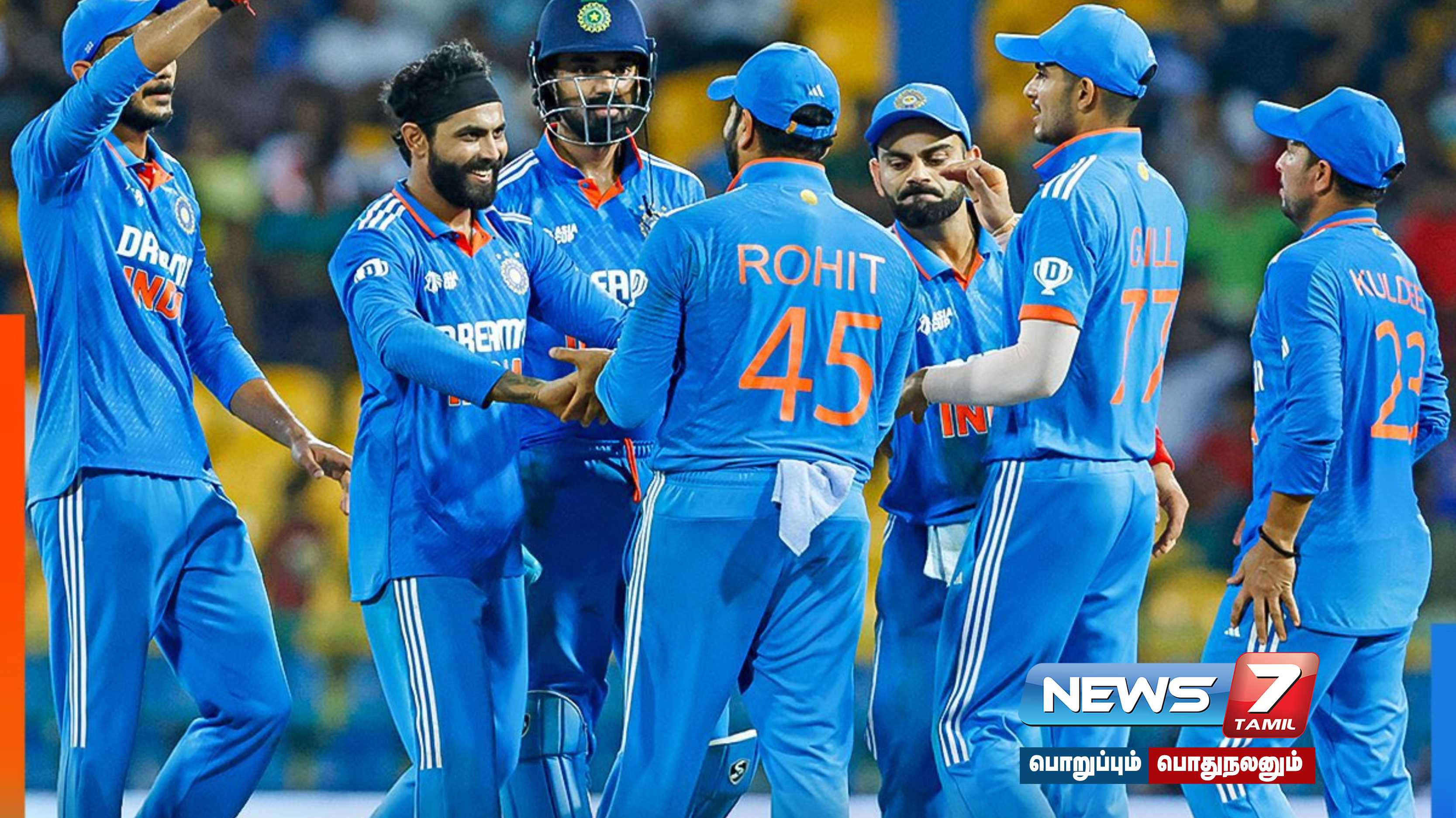 பின்னர் மழை நின்றவுடன் மீண்டும் ஆட்டம் தொடங்கிய நிலையில், இந்திய அணி 49.1 ஓவரில் அனைத்து விக்கெட்டுகளையும் இழந்து 213 ரன்கள் எடுத்தது. அதிகபட்சமாக ரோகித் சர்மா 53 ரன் அடித்தார்.
