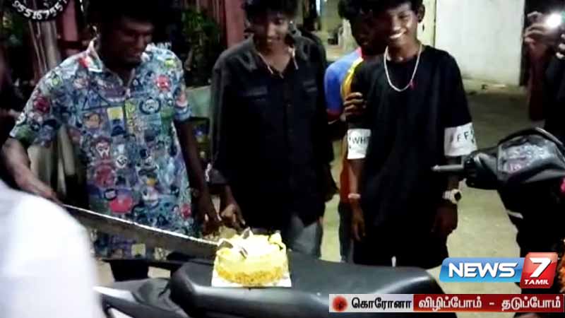 கொரோனா தொற்றுப்பரவலை கட்டுபடுத்த தமிழ்நாடு அரசு ஊரடங்கை அறிவித்து மக்கள் ஒன்று கூடுவதை தவிர்த்து வருகின்றனர். இந்நிலையில் சென்னை கண்ணகிநகர் பகுதியை சேர்ந்தச் இளைஞர் ஒருவருக்கு பிறந்தநாள் விழாவை முன்னிட்டு சுமார் 15 இளைஞர்கள் ஒன்று கூடி இரண்டு பட்டாக்கத்தியில் கேக் வெட்டி பிறந்தநாளை கொண்டாடியுள்ளனர்.