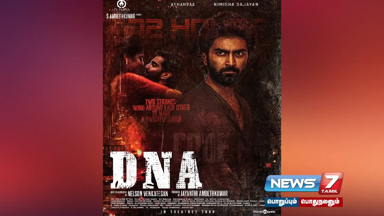 நடிகர் அதர்வா, நிமிஷா சஜயன் நடிக்கும் டிஎன்ஏ படத்தின் போஸ்டரை அதர்வாவின் பிறந்தநாளை முன்னிட்டு படக்குழு இன்று வெளியிட்டுள்ளது.