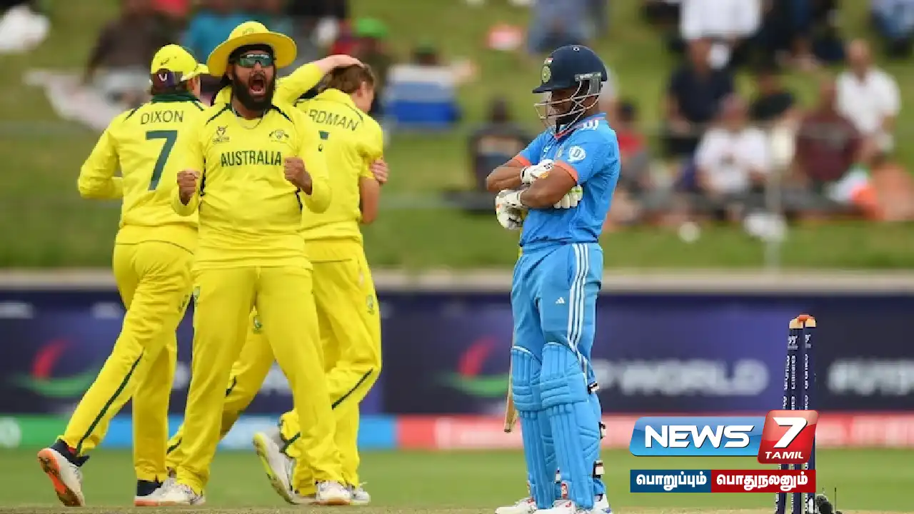 அர்ஷின் குல்கர்னி 3 ரன்னில் இருக்கும் போது கேட்ச் கொடுத்து அவுட் ஆனார். இறுதியில் 43.5 ஓவர்களிலேயே 174 ரன்களுக்கு இந்தியா ஆல்அவுட்டானது. ஆஸி அணி 79 ரன்கள் வித்தியாசத்தில் இந்தியாவை வீழ்த்தி சாம்பியன்ஷிப் பட்டத்தை பெற்றது.