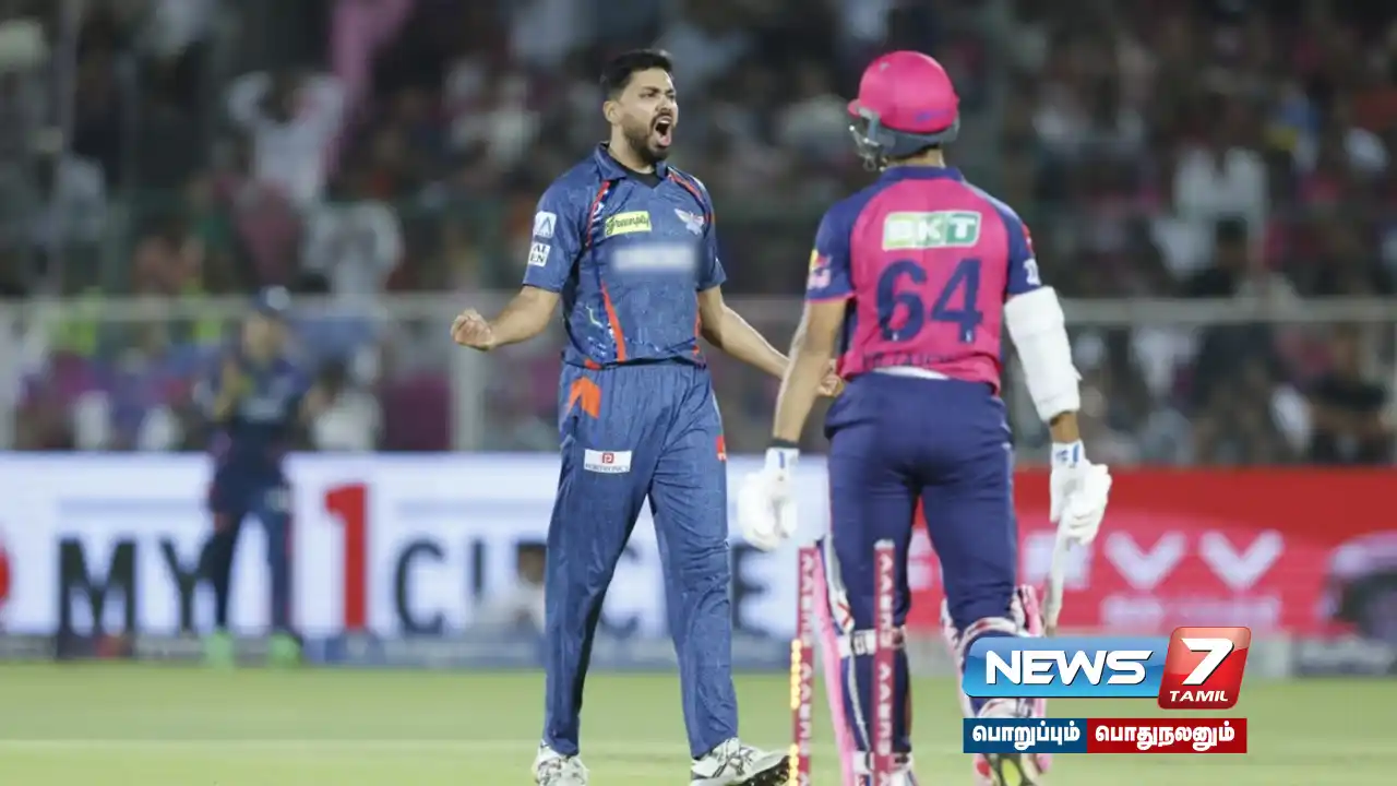 ஐபிஎல் தொடரின் 18வது சீசன் இந்தியாவின் பல்வேறு நகரங்களில் விறுவிறுப்பாக நடைபெற்று வருகிறது. அதன்படி, ஜெய்ப்பூரில் நேற்று நடைபெற்ற 2வது ஆட்டத்தில் ராஜஸ்தான் – லக்னோ அணிகள் மோதின. இதில் டாஸ் வென்ற லக்னோ அணியின் கேப்டன் ரிஷப் பண்ட் பேட்டிங்கை தேர்வு செய்தார். அதன்படி முதலில் பேட்டிங் செய்த லக்னோ அணியின் தொடக்க ஆட்டக்காரர் மிட்செல் மார்ஷ் 4 ரன்களில் வெளியேறினார். இவரையடுத்து களம்கண்ட நிக்கோலஸ் பூரன் 11 ரன்களிலும், ரிஷப் பண்ட் 3 ரன்களிலும் ஆட்டமிழந்தனர்.