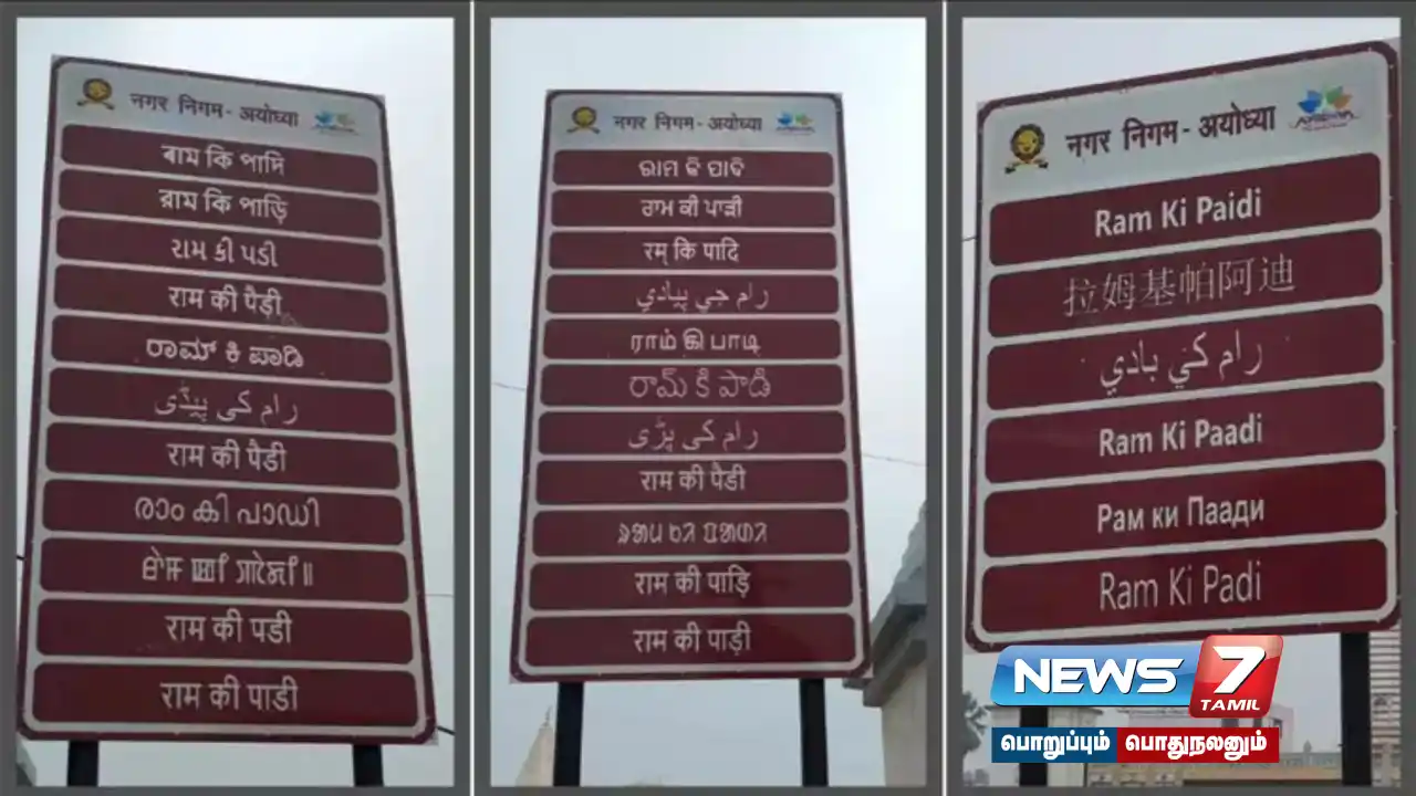இந்நிலையில், பல்வேறு மாநிலங்கள் மற்றும் நாடுகளில் இருந்து மக்கள் அயோத்தி ராமர் கோயிலில் சாமி தரிசனம் செய்ய வருவார்கள் என எதிர்பார்க்கப்படுகிறது. இதனால் அவர்கள் வசதிக்கு ஏற்ப 28 மொழிகளில் பெயர் பலகையை அயோத்தி மாவட்ட நிர்வாகம் வைத்துள்ளனர். இந்த பலகையில் 28 மொழிகளில் – 22 இந்திய மற்றும் 6 வெளிநாட்டு மொழிகளில் இருக்கும் என தெரிவித்துள்ளனர்.