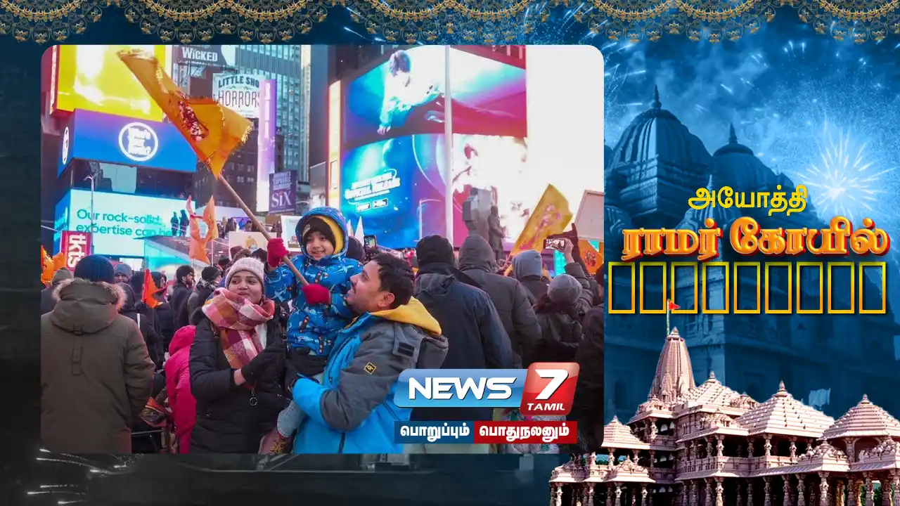 இன்று நடைபெறவுள்ள பிரதிஷ்டை விழாவை முன்னிட்டு, அமெரிக்காவிலும் பிற நாடுகளிலும் வசிக்கும் இந்தியர்கள், தங்கள் அளவற்ற உற்சாகத்தை வெளிப்படுத்தி, மிகுந்த ஆரவாரத்துடன் கொண்டாடத் தொடங்கியுள்ளனர். நியூயார்க் நகரத்தில், புகழ்பெற்ற டைம்ஸ் சதுக்கத்தில், இந்தியர்கள் பெரிய ராமர் படங்களால் ஒளிரச் செய்துள்ளனர்.