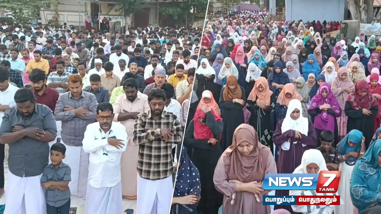 அதன்படி, தமிழ்நாடு முழுவதும் பக்ரீத் பண்டிகை இன்று (ஜுன் 7) கோலாகலமாக கொண்டாடப்பட்டு வருகிறது. இதனையொட்டி தமிழ்நாட்டின் பல்வேறு பகுதிகளில் இஸ்லாமியர்கள் சிறப்பு தொழுகையில் ஈடுபட்டுள்ளனர். இதில் பெண்கள், குழந்தைகள் உள்பட ஏராளமானோர் பங்கேற்றுள்ளனர்.
