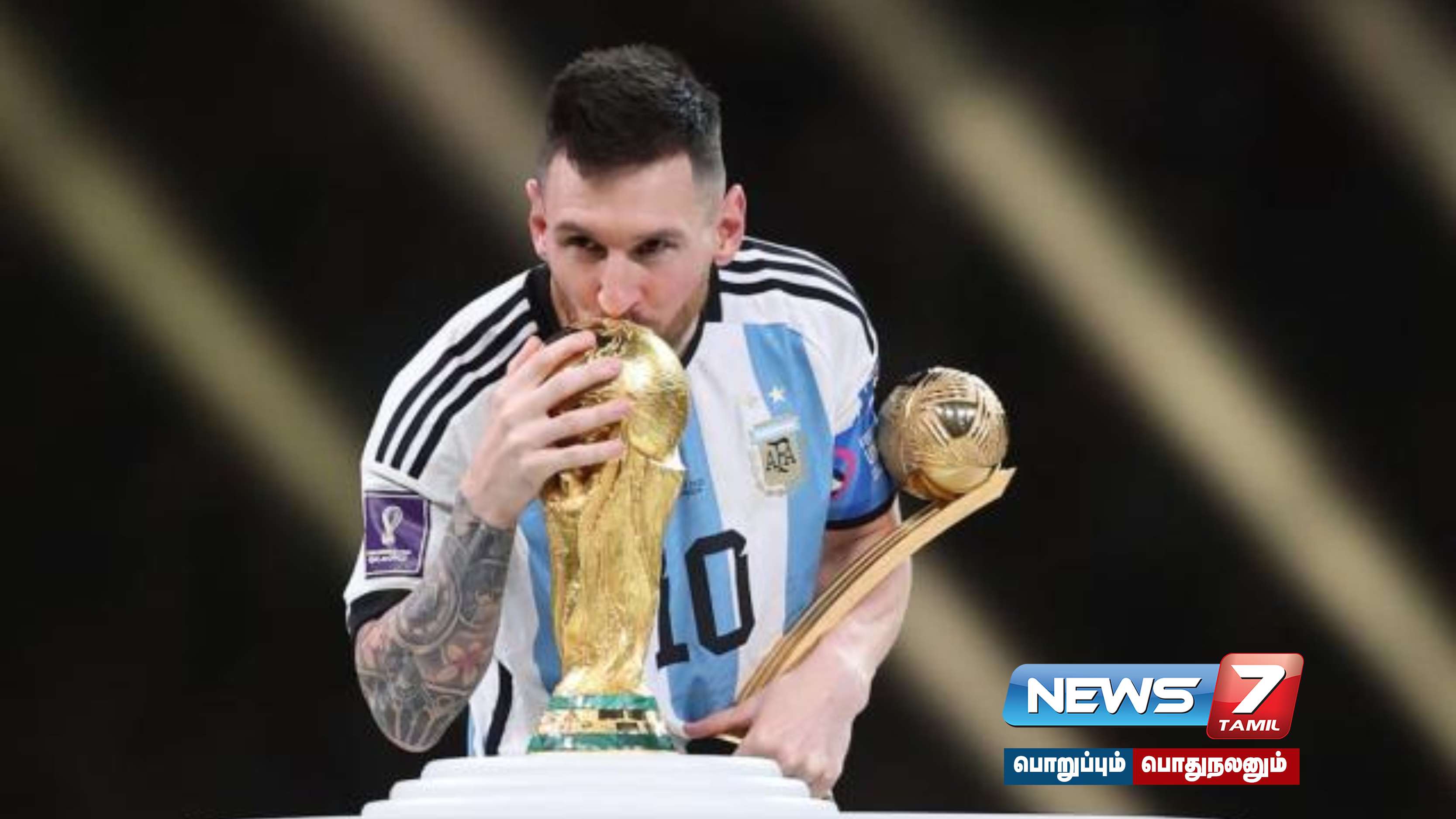 நடப்பு உலகக்கோப்பை தொடரில் சிறந்த வீரருக்கான தங்கப் பந்து விருதை நட்சத்திர வீரர் மெஸ்ஸி தனதாக்கி கொண்டுள்ளார்.