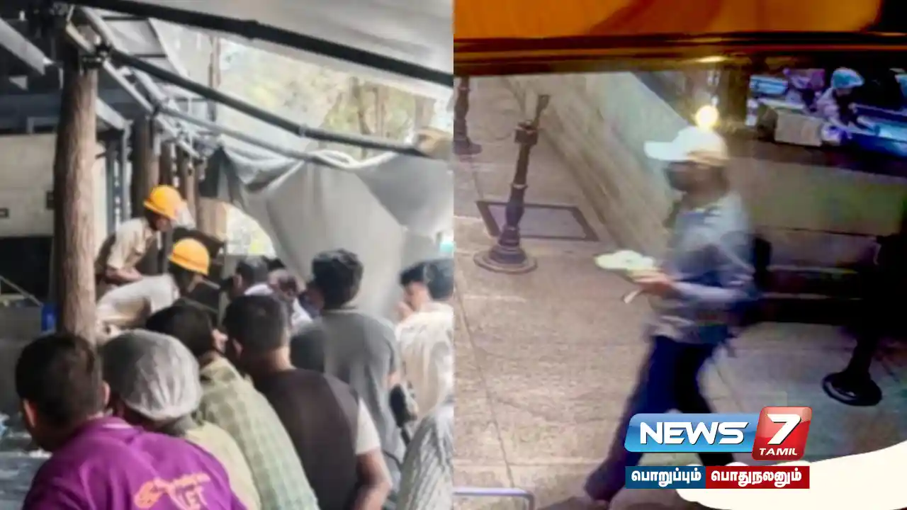 சந்தேக நபர், முகமூடி, கண்ணாடி மற்றும் தலைக்கு மேல் தொப்பியால் முகத்தை மறைத்து, இட்லி தட்டை எடுத்துச் செல்வது ஓட்டலில் பொருத்தப்பட்டிருந்த கேமராக்களில் சிக்கியுள்ளது.