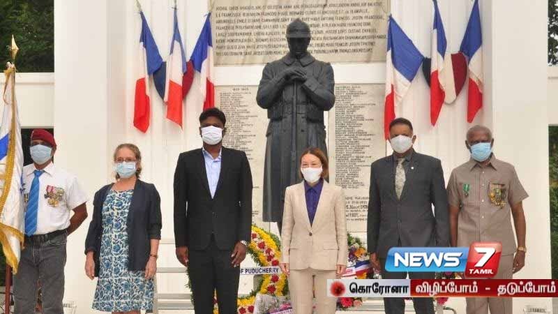 பிரான்ஸ் நாட்டு தேசிய தினத்தை முன்னிட்டு புதுச்சேரி கடற்கரைச் சாலையில் உள்ள போர் நினைவுச் சின்னத்தில் மரியாதை செலுத்தப்பட்டது.