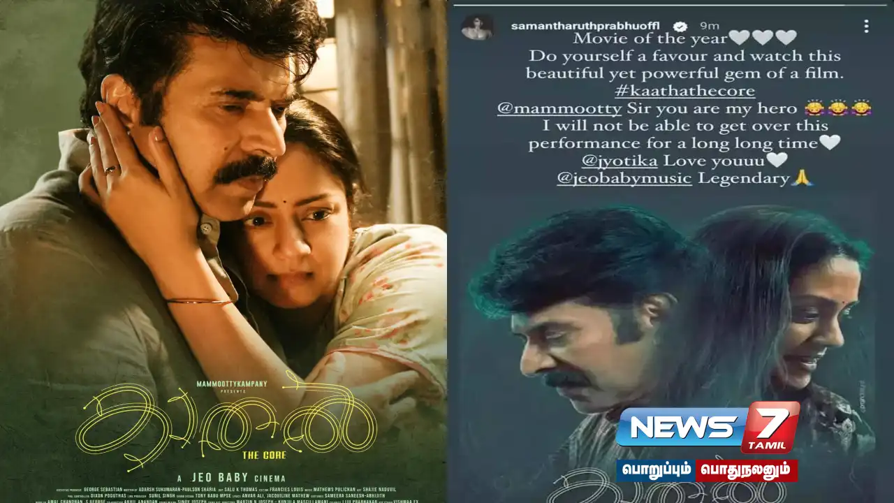 ஜோதிகா மற்றும் மம்மூட்டி இணைந்து நடித்துள்ள “காதல்-தி கோர்” திரைப்படம் இந்த ஆண்டிற்கான சிறந்த திரைப்படம் என நடிகை சமந்தா தனது இன்ஸ்டாகிராம் பக்கத்தில் பதிவிட்டுள்ளார்.