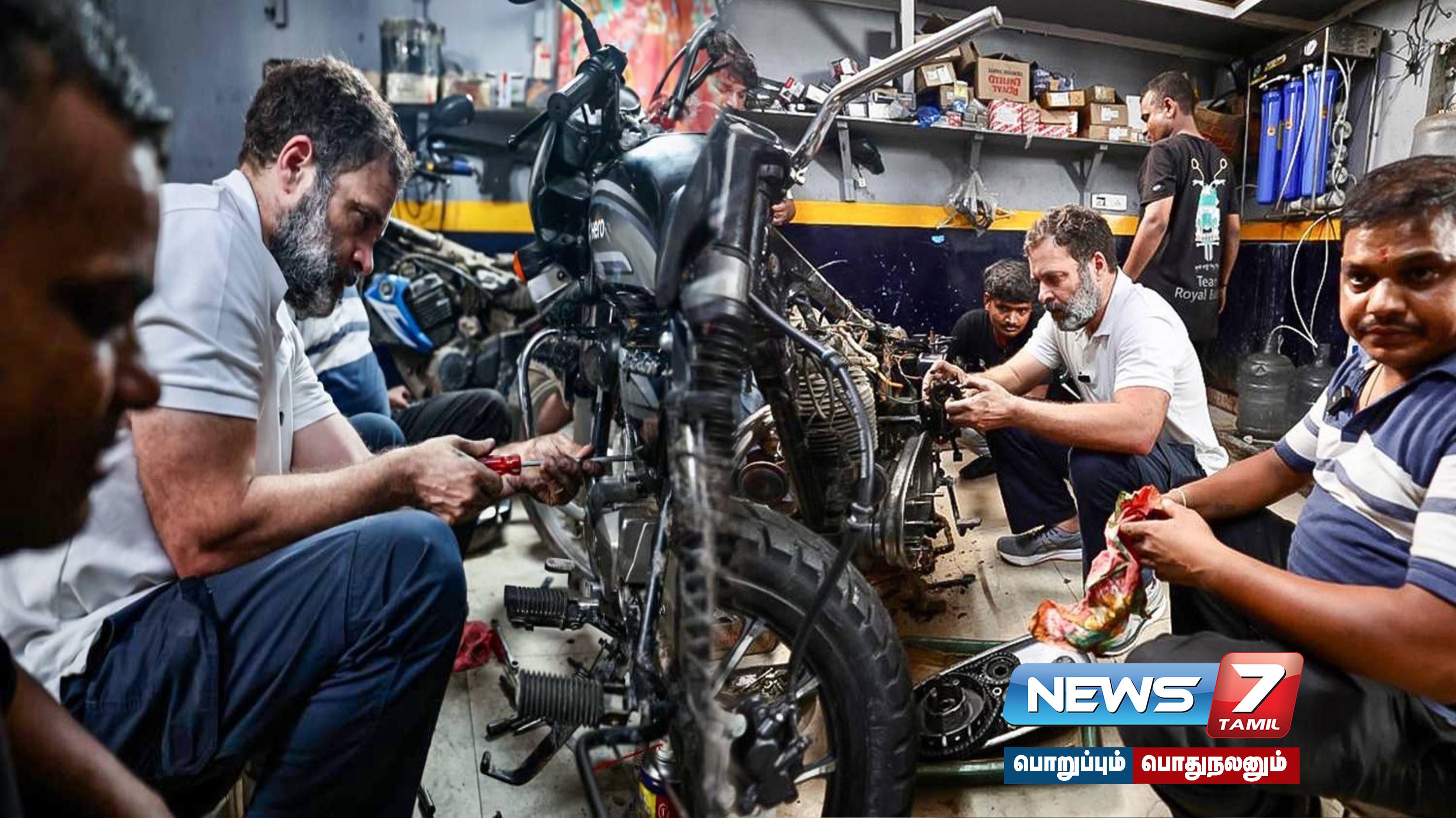 காங்கிரஸ் கட்சியின் முன்னாள் தலைவர் ராகுல் காந்தி தலைநகர் டெல்லியில் உள்ள கரோல்பாக் பகுதிக்கு திடீரென சென்றார். அங்கு டூ வீலர் பழுது பார்க்கும் ஒர்க் ஷாப்பிற்குள் நுழைந்த அவர் அங்கிருந்த மெக்கானிக்குடன் அமர்ந்து இரு சக்கர வாகனங்களை பழுது பார்த்தார். இது தொடர்பான புகைப்படங்கள் சமூக வலைதளங்களில் வைரலாகியது.