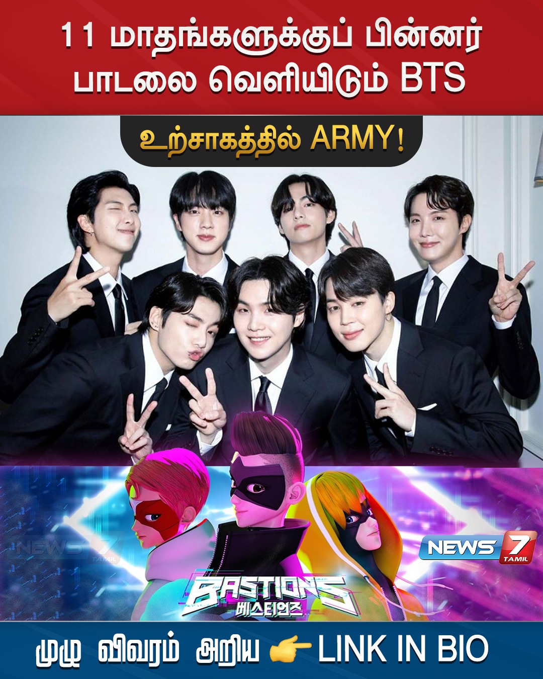 BTS-ன் ரசிகர் பட்டாளமான ’ஆர்மி’, அனைத்து உறுப்பினர்களும் மீண்டும் எப்போது ஒன்றாக இசை ஆல்பத்தை வெளியிடுவார்கள், இசை நிகழ்ச்சி நடத்துவார்கள் என்று காத்துக் கொண்டிருக்கின்றனர். அந்த எதிர்பார்ப்புக்கு தீணி போடும் விதமாக, ’பாஸ்டியன்ஸ்’ எனும் தென்கொரிய அனிமேஷன் திரைப்படத்தின் தீம் பாடலை BTS பாடியுள்ளதாக தகவல்கள் வெளியாகியுள்ளன.