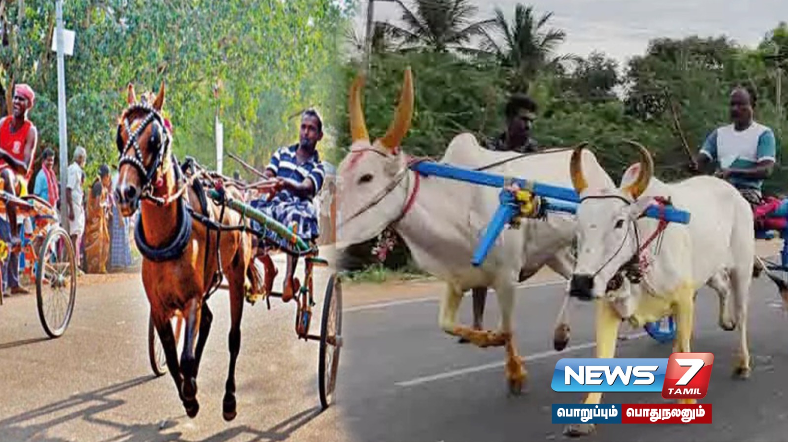 ஊர் பொதுமக்கள் சார்பில் மாட்டு வண்டி மற்றும் குதிரை வண்டி பந்தயம் நடை பெற்றது.