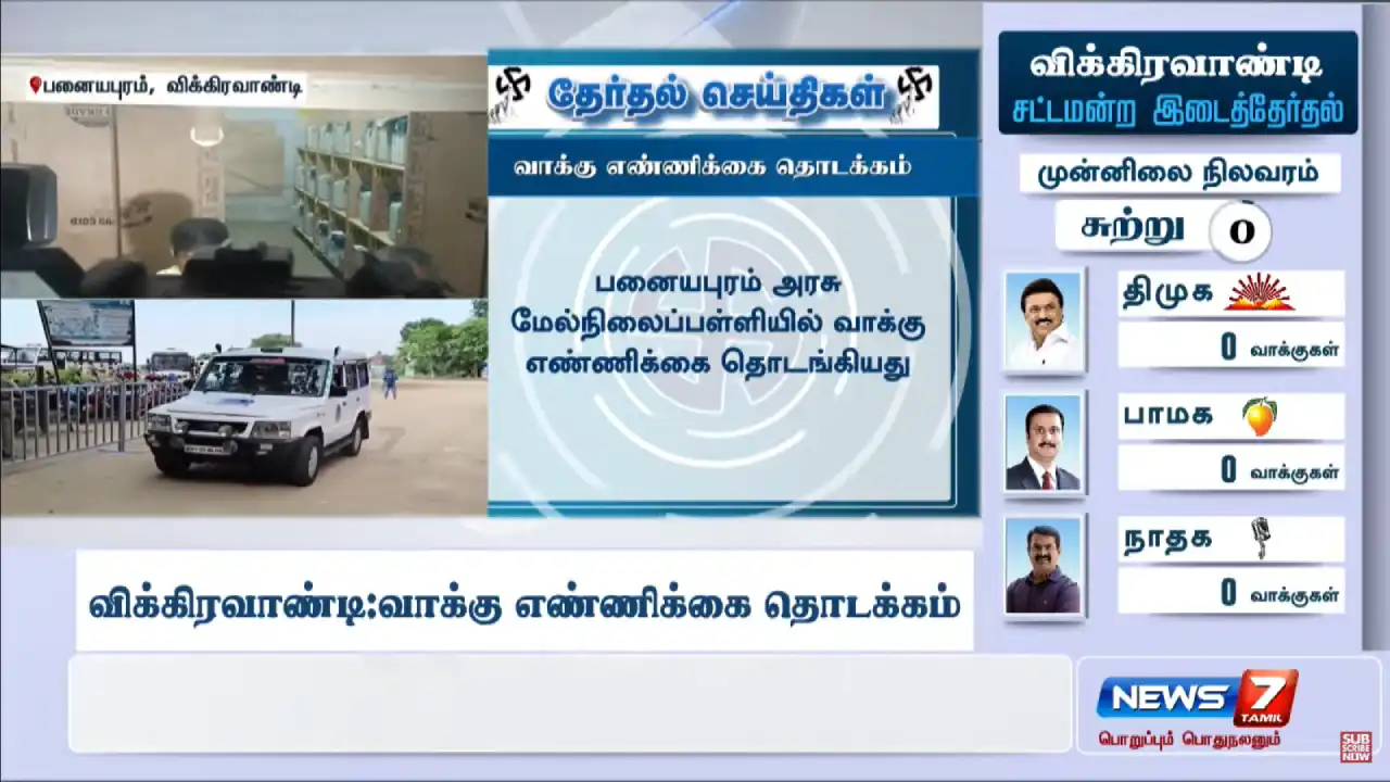 அதன்பிறகு ஓட்டுப்பதிவு இயந்திரங்கள் சீல் வைக்கப்பட்டு பனையபுரம் அரசு மேல்நிலைப் பள்ளியில் பாதுகாக்கப்பட்டு வருகிறது. இன்று (ஜூலை 13) காலை 8 மணிக்கு ஓட்டு எண்ணிக்கை தொடங்கப்படுவதாக அறிவிக்கப்பட்டுள்ளது. அதன்படி, ஓட்டு எண்ணிக்கை தொடங்கியது. மொத்தம் 14 மேசைகள் அமைக்கப்பட்டு, 20 சுற்றுகளாக முடிவுகள் வெளியிடப்படவுள்ளன.