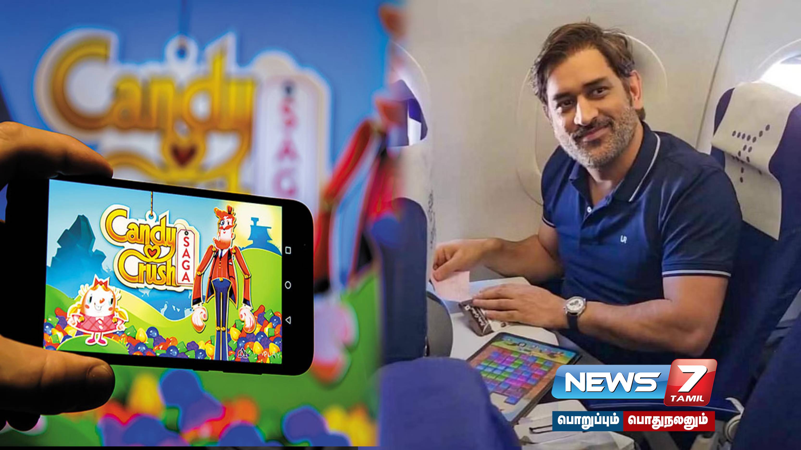 இந்நிலையில் கேப்டன் மகேந்திர சிங் டோனி கேண்டி க்ரஷ் விளையாடும் வீடியோ வெளியாகி தற்போது வைரலாகி வருகிறது. விமானத்தில் இருக்கையில் அமர்ந்துள்ள டோனி தன்னுடைய டேப்பில் கேண்டி க்ரஷ் விளையாடுகிறார். அவருக்காக சாக்லேட் மற்றும் பிஸ்கட்களை எடுத்துக் கொண்டு விமான பணிப்பெண் தோனி அமர்ந்திருக்கும் இருக்கைக்கு சென்று அவரிடம் எடுத்துக் கொள்ளுமாறு தட்டை நீட்டுகிறார். அதற்கு தோனி பணிப்பெண்ணிடம் சிரித்தப்படி மகிழ்ச்சியாக நன்றி தெரிவிக்கிறார்.