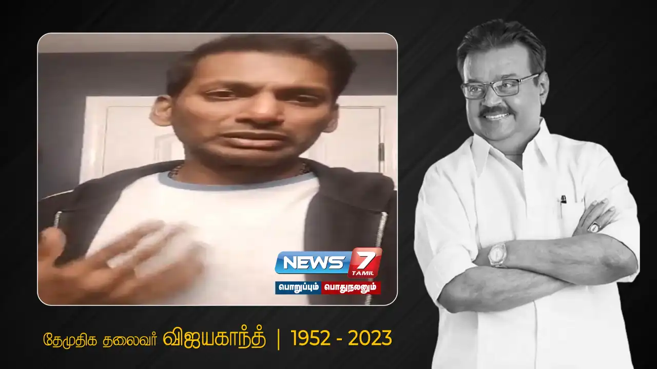 தேமுதிக நிறுவனரும், நடிகருமான கேப்டன் விஜயகாந்த் மறைவிற்கு நடிகரும், நடிகர் சங்க பொதுச் செயலாளருமான விஷால் கண்ணீர் மல்க இரங்கல் தெரிவித்து வீடியோ வெளியிட்டுள்ளார்.