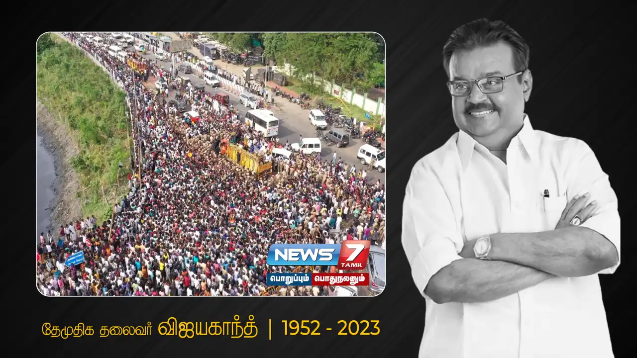 தேமுதிக தலைவரும், எதிா்க்கட்சி முன்னாள் தலைவரும், நடிகருமான விஜயகாந்த் (71) உடல் நலக் குறைவு காரணமாக நேற்று காலமானாா். மறைந்த தேமுதிக தலைவா் விஜயகாந்தின் உடல் பொதுமக்கள் அஞ்சலி செலுத்துவதற்காக தீவுத்திடலில் வைக்கப்பட்டது. ஏராளமான மக்கள் அலைகடல் என திரண்டு வந்து விஜயகாந்த்துக்கு அஞ்சலி செலுத்தினர்.