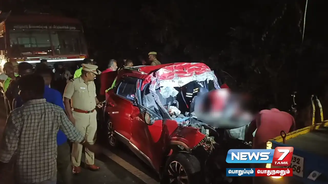 மதுராந்தகம் அருகே நடைபெற்ற கொடூர கார் விபத்தில் ஒரே குடும்பத்தை சேர்ந்த மூன்று பேர், கார் ஓட்டுநர் உட்பட நான்கு பேர் உயிரிழந்துள்ள சம்பவம் அப்பகுதியில் அதிர்ச்சியை ஏற்படுத்தி உள்ளது.