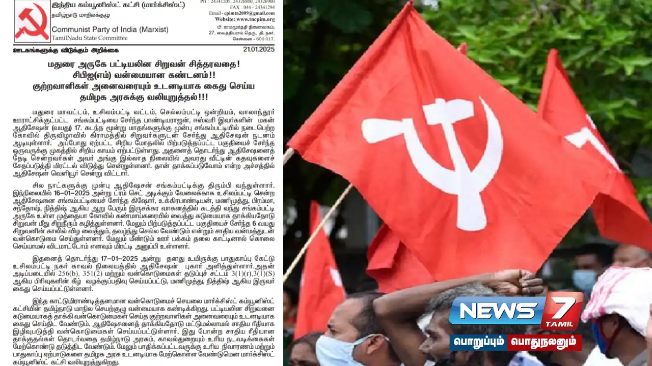 மதுரை செல்லம்பட்டி அருகே உள்ள சங்கம்பட்டி கிராமத்தைச் சேர்ந்த பட்டியலின சிறுவனை ஆறு பேர் சேர்ந்த கும்பல் சித்திரவதை செய்த சம்பவம் பெரும் பரபரப்பை ஏற்படுத்தியது. இந்த நிலையில் மார்க்சிஸ்ட் கம்யூனிஸ்ட் கட்சியினர் கொடூர சம்பவத்தில் ஈடுபட்ட குற்றவாளிகளை உடனடியாக கைது செய்ய தமிழக அரசை வலியுறுத்தி அறிக்கை வெளியிட்டுள்ளனர். அந்த அறிக்கையில்,