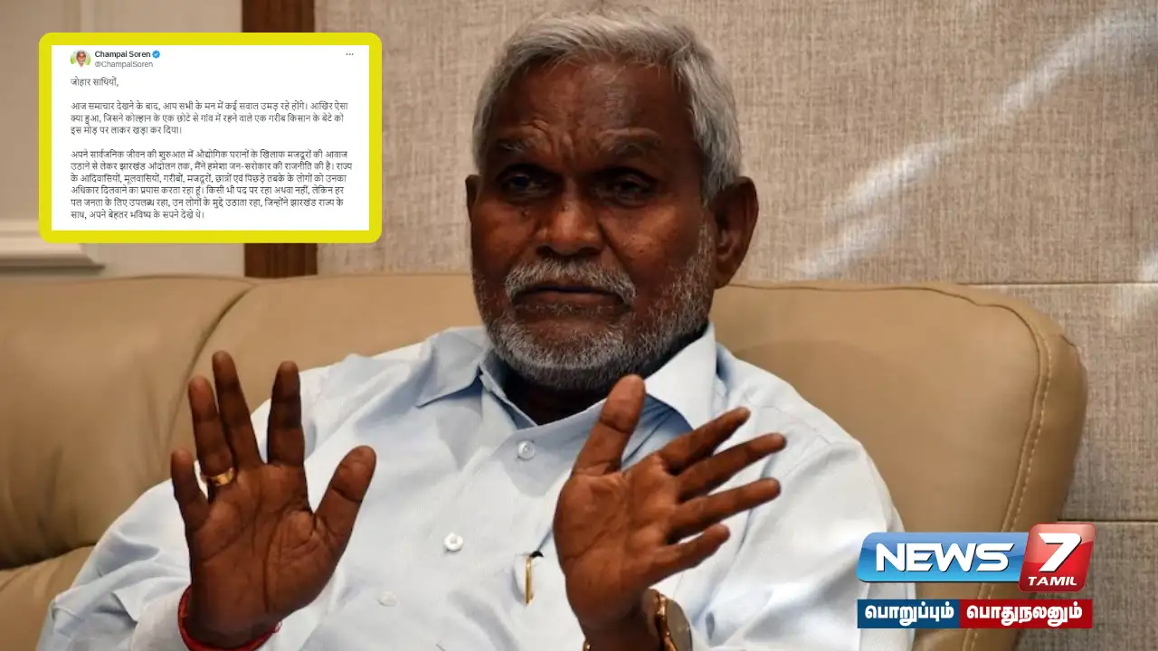இந்த நிலையில் ஜார்க்கண்ட் இடைக்கால முதலமைச்சராக இருந்தவரான சம்பாய் சோரன் தனது எக்ஸ் பக்கத்தில் நீண்ட பதிவு ஒன்றை எழுதியுள்ளார். அதில் தெரிவித்துள்ளதாவது..