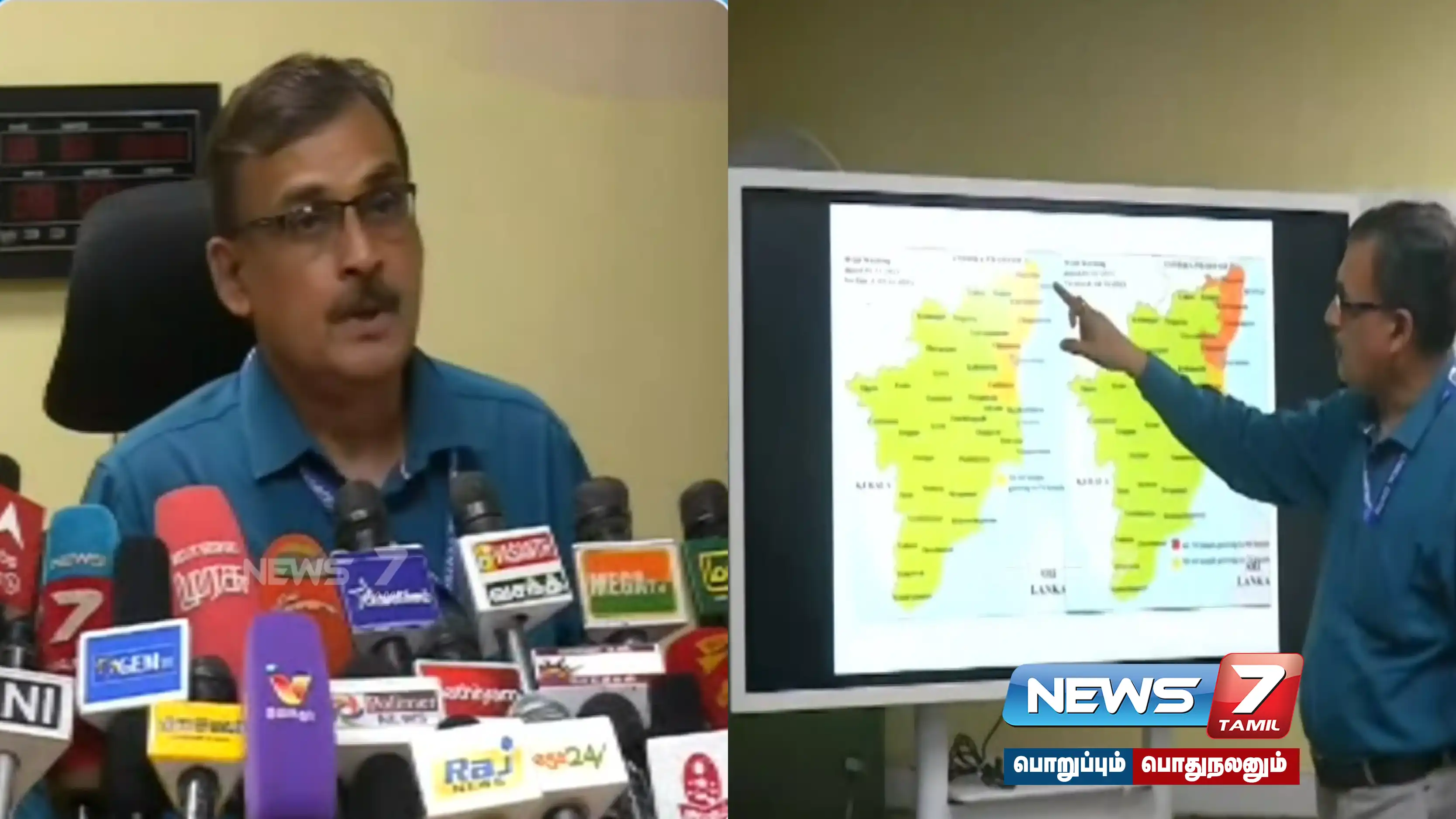 மேலும் நாளை முதல் வரும் 5-ம் தேதி வரை ஆரஞ்சு எச்சரிக்கை விடுக்கப்பட்டுள்ளது. இதன் காரணமாக புயல் எச்சரிக்கை எதிரொலியாக 9 துறைமுகங்களில் புயல் எச்சரிக்கை கூண்டு ஏற்றப்பட்டுள்ளது. இந்நிலையில் தென்மண்டல வானிலை ஆய்வு மையத்தலைவர் பாலச்சந்திரன் செய்தியாளர்களை சந்தித்தார்.