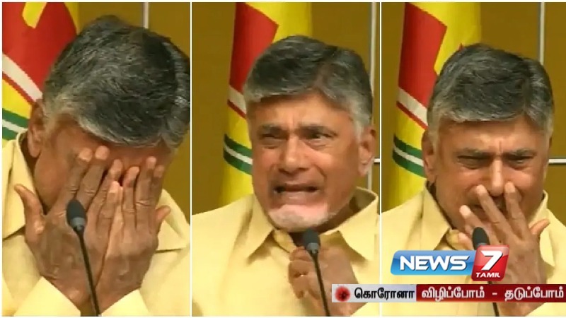 தெலுங்கு தேசம் கட்சியின் தலைவரும் ஆந்திர மாநில முன்னாள் முதலமைச்ச ருமான சந்திரபாபு நாயுடு கண்ணீர் விட்டு அழுதது பரபரப்பை ஏற்படுத்தி உள்ளது.