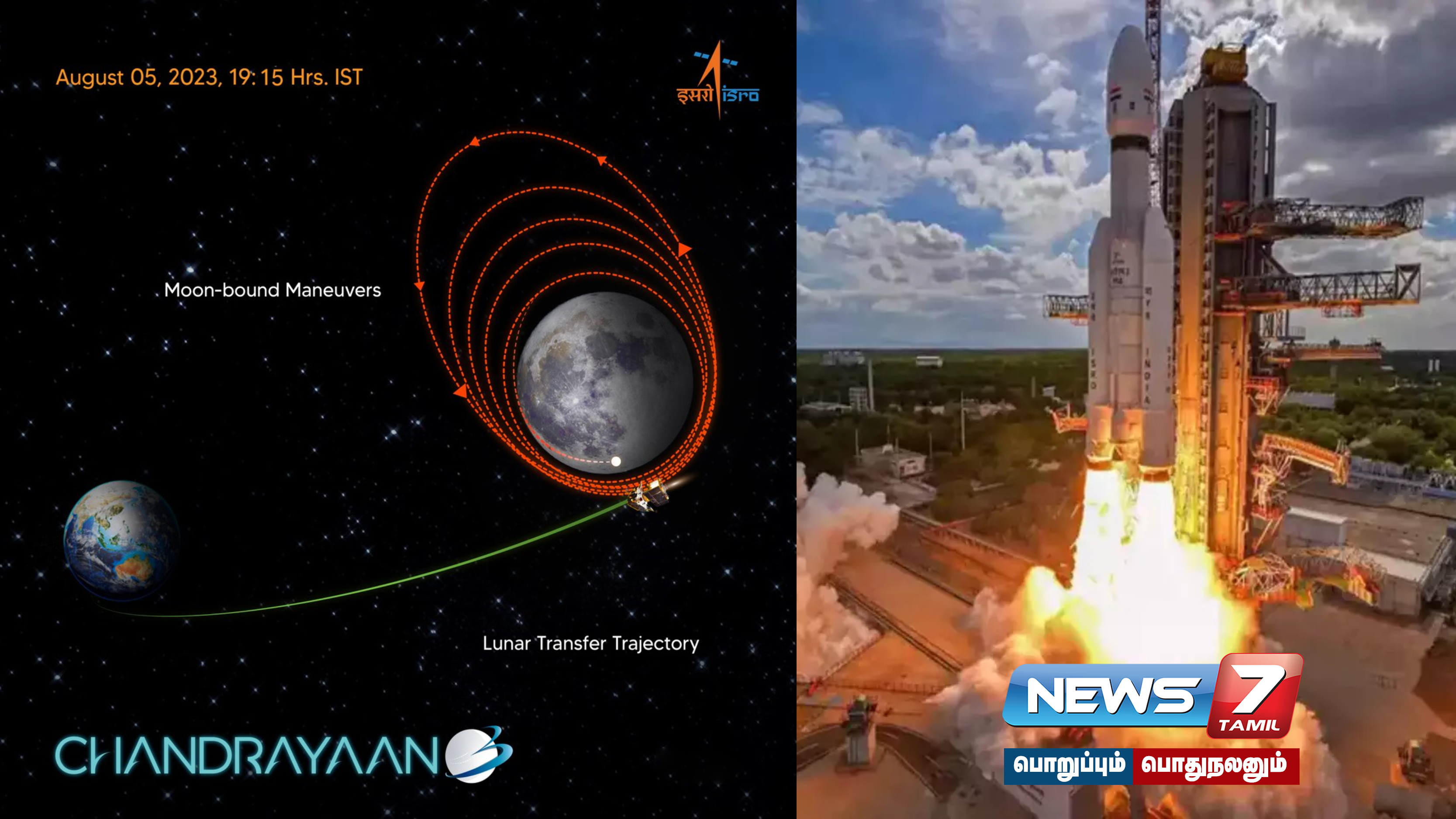 நிலவின் மேற்பரப்பில் தரையிறங்கி பல்வேறு ஆய்வுகளை மேற்கொள்வதற்காக 615 கோடி ரூபாய் செலவில் வடிவமைக்கப்பட்ட சந்திரயான்-3 விண்கலம், ஸ்ரீஹரிகோட்டாவில் இருந்து எல்விஎம்-3 ராக்கெட் மூலம் கடந்த 14-ஆம் தேதி விண்ணில் செலுத்தப்பட்டது. புவி சுற்று வட்டப்பாதையில் இது அன்றைய தினமே நிலைநிறுத்தப்பட்ட நிலையில், படிப்படியாக விண்கலம் அடுத்தடுத்த சுற்றுப்பாதைகளுக்கு உயர்த்தப்பட்டது.