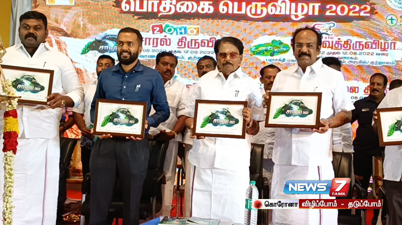 தற்போது முதலமைச்சர் மு.க.ஸ்டாலின் தலைமையிலான ஆட்சி தமிழ்நாட்டில் நடந்து வரும் சூழலில் தமிழ்நாடே குற்றாலம் போல் வளம் மிகுந்து காணப்படுகிறது மேன்மேலும் தமிழ்நாடு இதேபோல், வளர்ச்சி அடையும் எனப் பேசினார். அவரைத் தொடர்ந்து பேசிய வருவாய்த்துறை அமைச்சர் கே.கே.எஸ்.ஆர்.ராமச்சந்திரன், இயற்கை வளம் பொருந்திய இந்த குற்றாலத்தில் முன்பெல்லாம் சாரலே இல்லாமல் சாரல் திருவிழா நடந்துள்ளது. ஆனால், தற்போது அருவிகளில் வெள்ளம் ஓடிக்கொண்டிருக்கிறது இப்படி ஒரு சூழலில் இந்த சாரல் விழாவானது வெகு சிறப்பாக நடைபெற்று வருகிறது.