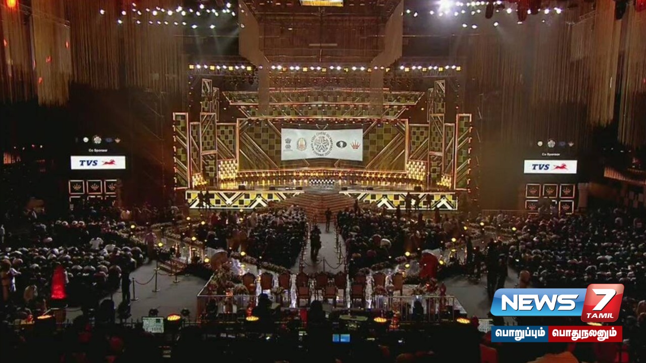 44வது செஸ் ஒலிம்பியாட் நிறைவு விழா சென்னை நேரு உள்விளையட்டு அரங்கில் இன்று பிரம்மாண்டமாக நடைபெற்றது. முதலமைச்சர் மு.க.ஸ்டாலின் முன்னிலையில் நடைபெற்ற இந்த நிகழ்ச்சிகள் தொடக்க விழாவிற்கு இணையாக பிரம்மிப்பூட்டும் வகையில் அமைந்தன.