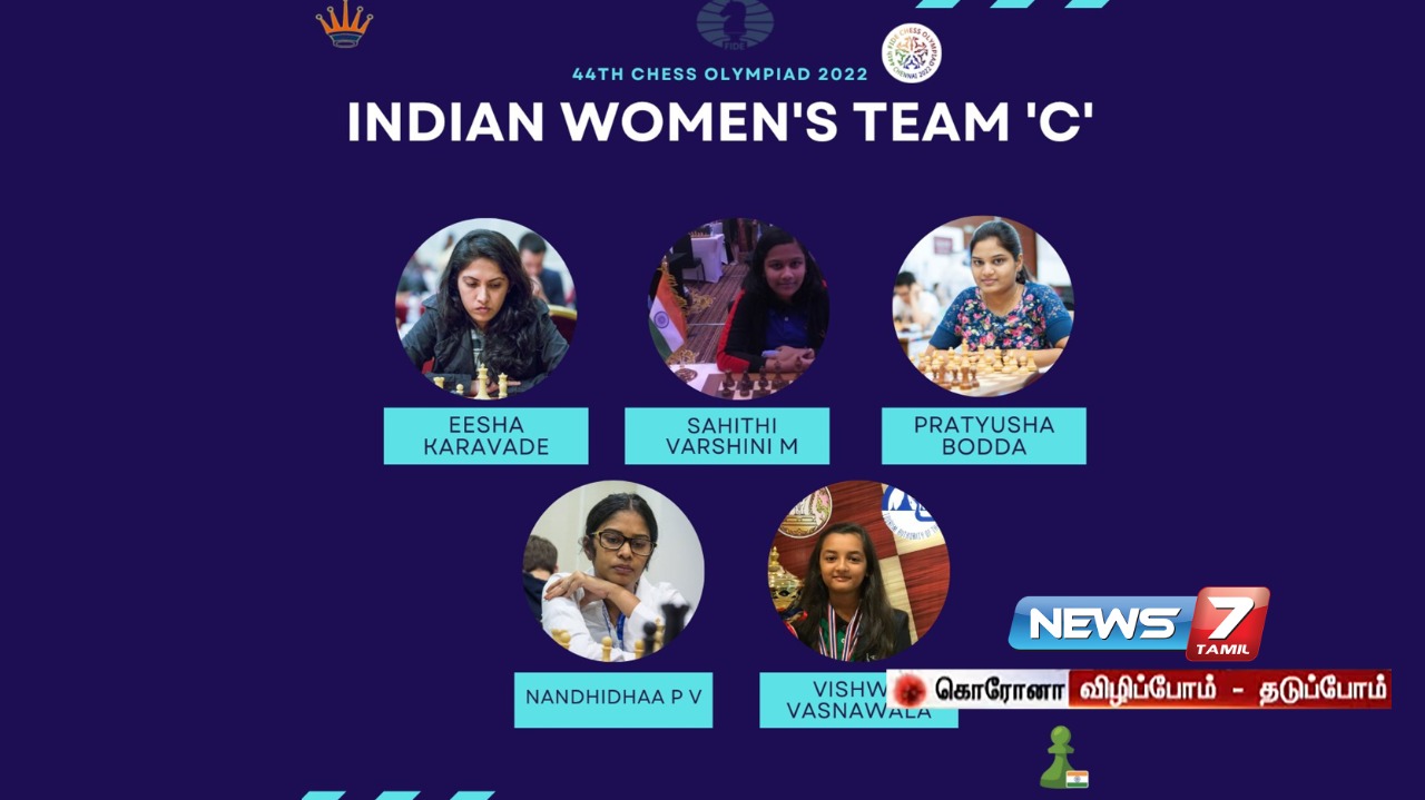 இந்நிலையில் இந்திய சார்பில் பங்கேற்கம் மகளிர் அணி சி பிரிவினரை அகில இந்திய சதுரங்க கூட்டமைப்பு அறிவித்துள்ளது. அதன்படி ஈஷா கரவடே, ஷாகிதி வர்ஷினி, பிராட்யுஷா போடா, பி.வி.நந்திதா மற்றும் விஷ்வா வாஷ்ணவாலா இதில் இடம் பெற்றுள்ளனர்.