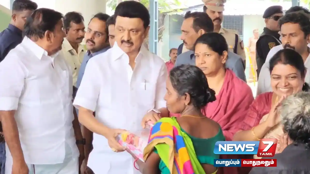 முதற்கட்டமாக புனித மரியன்னை ஆண்கள் மேல்நிலைப்பள்ளி நிவாரண முகாமில் தங்க வைக்கப்பட்டுள்ள 600 குடும்பங்களை சந்தித்து அவர்களுக்கு அரிசி உள்ளிட்ட அத்தியாவசிய பொருட்களை வழங்கினார். அவருடன் அமைச்சர்கள், தூத்துக்குடி மக்களவை உறுப்பினர் கனிமொழி மற்றும் உயர் அதிகாரிகள் இருந்தனர்.