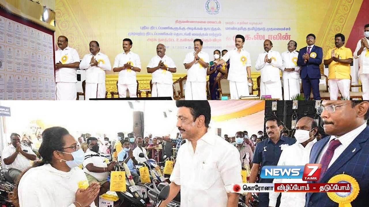 திருவண்ணாமலையில் ரூ. 340.21 கோடியில் 246 புதிய திட்டப் பணிகளுக்கு முதல்வர் மு.க.ஸ்டாலின் அடிக்கல் நாட்டினார். ரூ. 70.27 கோடியில் 91 முடிவுற்ற திட்டங்களை திறந்துவைத்தார். ரூ. 693.03 கோடியில் 1,71,169 பேருக்கு அரசு நலத்திட்ட உதவிகளை வழங்கினார். தொடர்ந்து அவர் பேசியதாவது: