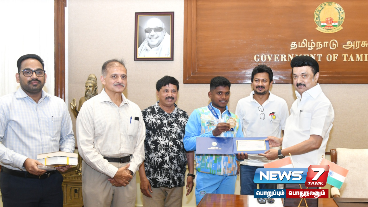 2024 பாரா தடகள உலக சாம்பியன்ஷிப் போட்டியில் தங்கப் பதக்கம் வென்ற மாரியப்பனுக்கு ஊக்கத் தொகையாக ரூ.75 லட்சம் காசோலையை தமிழ்நாடு முதலமைச்சர் மு.க.ஸ்டாலின் இன்று வழங்கி பாராட்டினார்.