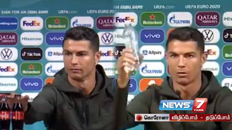 யூரோ கோப்பை தொடரின் நடப்பு சாம்பியன் போர்ச்சுகல் அணி ஹங்கேரி அணியை எதிர்கொண்டது. இதற்கு முன்னதாக நடந்த செய்தியாளர் சந்திப்பிற்கு வந்த ரொனால்டோ, மேஜையில் Coca-Cola குளிர்பான பாட்டில்கள் வைக்கப்பட்டிருந்தை பார்த்தார்.