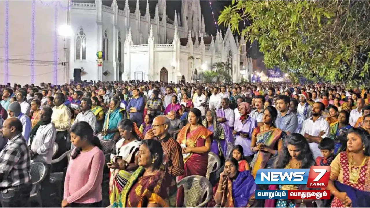 சென்னை சாந்தோம் பேராலயத்தில் கிறிஸ்துமஸ் விழா கோலாகலமாக கொண்டாடப்பட்டது. நள்ளிரவு முதலே கிறிஸ்துவர்கள் சிறப்பு பிரார்த்தனையில் ஈடுபட்டனர். ஏசு கிறிஸ்து பிறப்பை விவரிக்கும் வகையில், வண்ண மலர்களால் ஆன குடில்கள் அமைக்கப்பட்டிருந்தன.