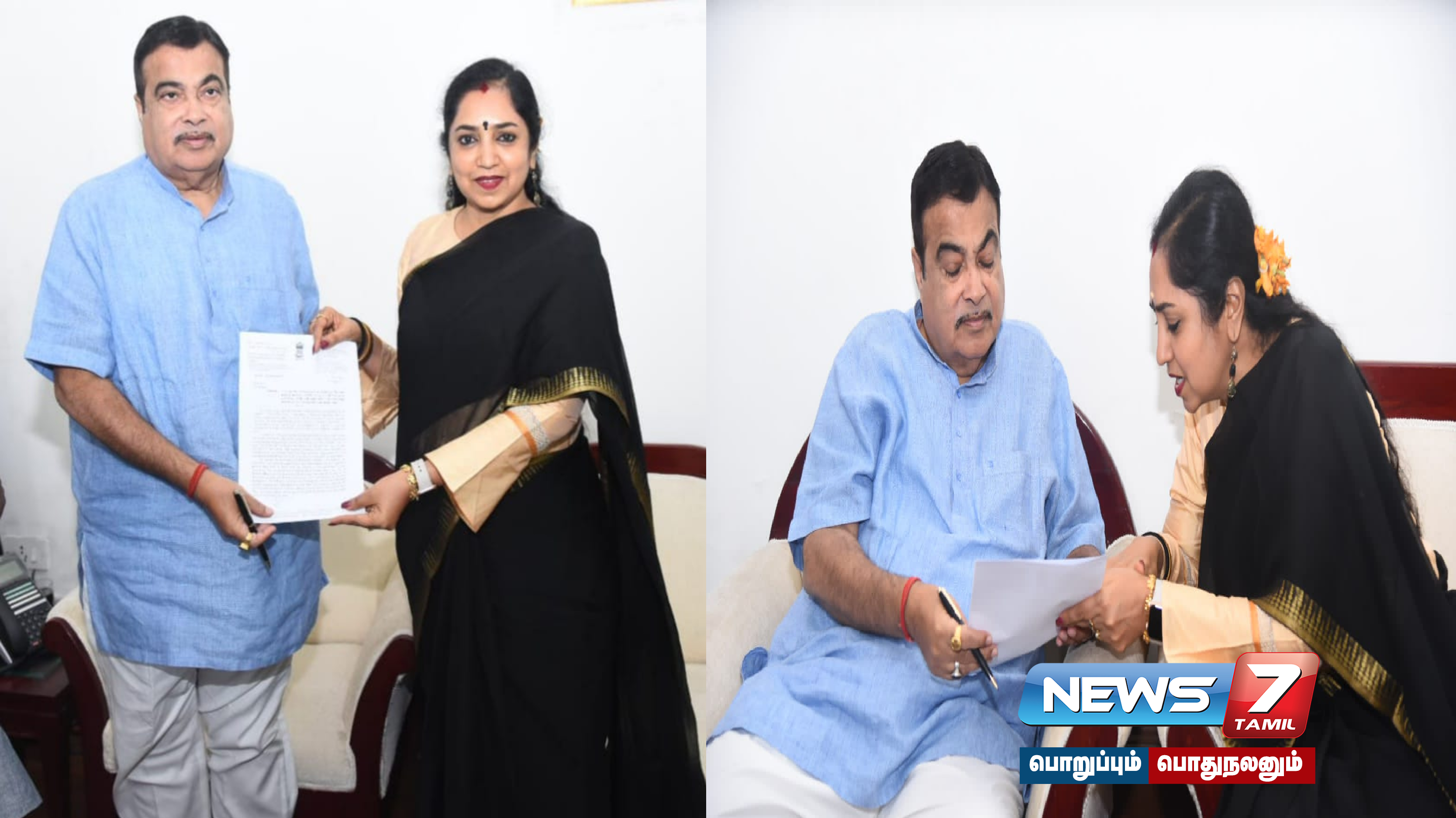 சாலைப் போக்குவரத்து மற்றும் நெடுஞ்சாலைகள் துறை அமைச்சர் நிதின் கட்கரியை திமுகவை சேர்ந்த மக்களவை உறுப்பினர் தமிழச்சி தங்கபாண்டியன் டெல்லியில் நேரில் சந்தித்தார்.