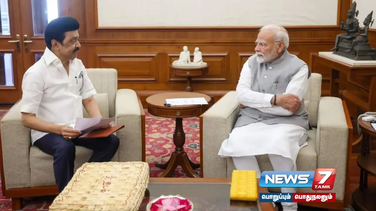 3 முக்கிய கோரிக்கைகளுடன் பிரதமரின் அலுவலகத்துக்கு சென்ற முதலமைச்சர் மு.க.ஸ்டாலின், பிரதமர் மோடியை சந்தித்துப் பேசினார். அப்போது கோரிக்கை மனுக்களை பிரதமரிடம் முதலமைச்சர் மு.க. ஸ்டாலின் வழங்கினார்.