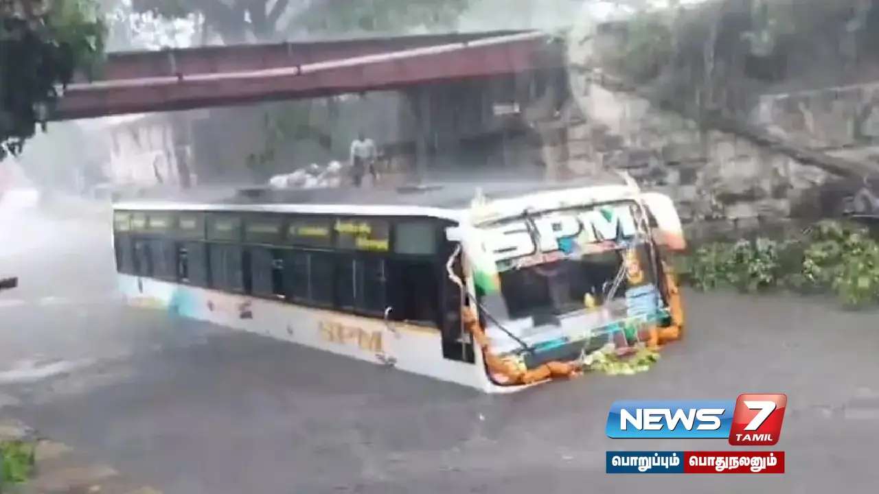 கோவையில் சிவானந்த காலனி பகுதியில் தனியார் பேருந்து மழை நீரில் சிக்கிய நிலையில் பயணிகள் பத்திரமாக மீட்கப்பட்டனர்.