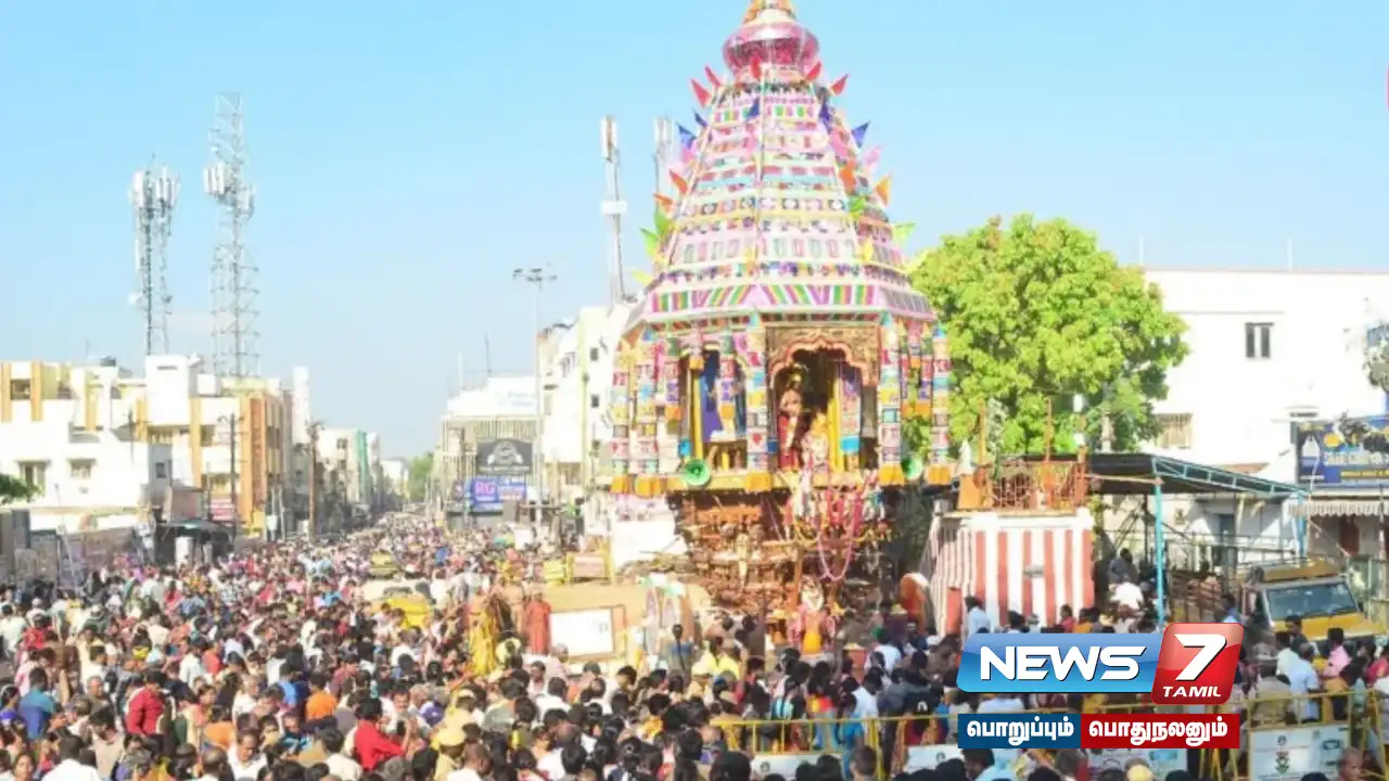 இதையடுத்து, இந்த தேர்த்திருவிழாவின் முக்கிய நிகழ்ச்சியான தேரோட்டம் இன்று காலை 5 மணியளவில் தொடங்கியது. மேலும், அம்மன் தேருக்கு எழுந்தருளும் நிகழ்ச்சி நடந்தது. இதனைத் தொடர்ந்து, திருத்தேர் வடம்பிடித்து இழுக்கும் நிகழ்ச்சி நடைபெற்றது. பேரூர் ஆதினம் சாந்தலிங்க மருதாசல அடிகளார், கௌமார மடாலயம் சிரவை ஆதினம் குமரகுருபர சுவாமிகள் உள்ளிட்டோர் கலந்துகொண்டு தேரை வடம்பிடித்து இழுத்தனர்.