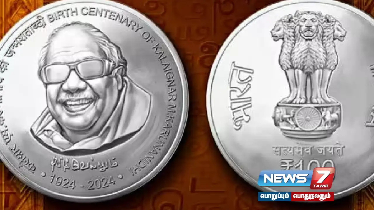 திமுக சாா்பில் கருணாநிதி நூற்றாண்டு விழா, பல்வேறு நிகழ்ச்சிகளின் மூலம் சிறப்பாகக் கடைப்பிடிக்கப்பட்டது. இந்த நிலையில், கருணாநிதியின் நூற்றாண்டையொட்டி மத்திய அரசு சாா்பில் அவரின் உருவம் பொறித்த ரூ.100 நாணயத்தை இன்று வெளியிடுகிறார் மத்திய அமைச்சர் ராஜ்நாத் சிங்.