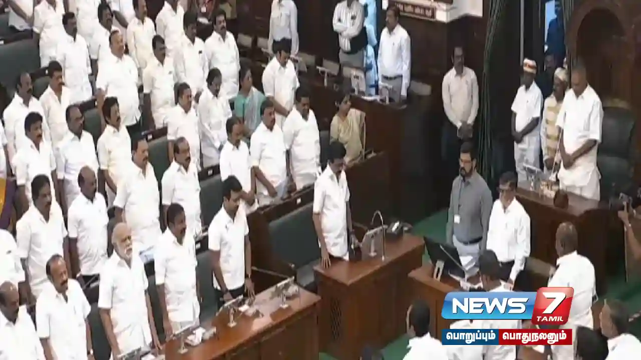 இந்த நிலையில் இன்று காலை 9.30 மணிக்கு தமிழக சட்டசபை 2-வது நாளாக மீண்டும் கூடியது. கூட்டம் தொடங்கியதும் மறைந்த சேந்தமங்கலம் தொகுதி திமுக எம்.எல்.ஏ. கு.பொன்னுசாமி மறைவுக்கு இரங்கல் தெரிவிக்கப்பட்டது. இதனை தொடர்ந்து மறைந்த தொழிலதிபர் அருணாசலம் வெள்ளையன், கவிஞர் ஈரோடு தமிழன்பன், திரைப்பட தயாரிப்பாளர் ஏ.வி.எம்.சரவணன், முன்னாள் மக்களவை தலைவர் சிவராஜ் பாட்டீல் ஆகியோர் மறைவுக்கும், மறைந்த முன்னாள் உறுப்பினர்களுக்கும் இரங்கல் தெரிவிக்கப்பட்டது.