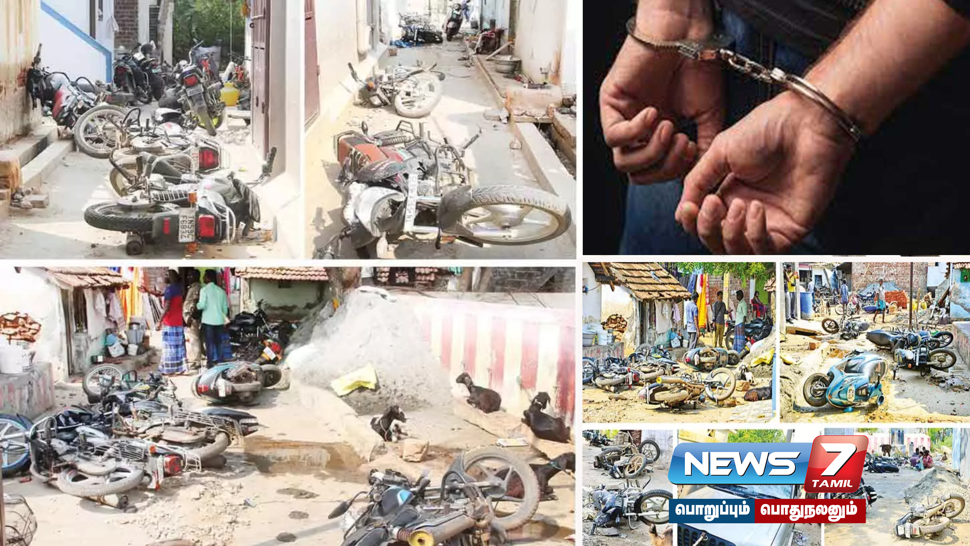 இந்த சம்பவத்தால் ஆத்திரம் அடைந்த ஒரு தரப்பை சேர்ந்தவர்கள், மற்றொரு தரப்பினர் வசிக்கும் பகுதிக்குள் நள்ளிரவில் அருவாள், வாள் உள்ளிட்ட ஆயுதங்களுடன் புகுந்தனர். அங்கிருந்த பிறகு வீடுகளின் முன்பு நிறுத்தப்பட்டிருந்த மோட்டார் சைக்கிள்கள் உள்ளிட்ட வாகனங்களை அடித்து நொறுக்கினர். இதில் ஒரு கார் உட்பட 34-க்கும் மேற்பட்ட மோட்டார் சைக்கிள்கள் சேதமானது. இதை தடுக்க வந்த அந்த பகுதியை சேர்ந்த , திருக்குமார், மணிமுத்து, பழனி குமார், செல்வகுமார், 4 பேர் மீது அந்த கும்பலை சேர்ந்தவர்கள் சரமாரியாக தாக்கினர். மேலும் அப்பகுதியை சேர்ந்த சிலருக்கு அவர்கள் கொலை மிரட்டல் விடுத்துவிட்டு தப்பினர். இந்த தாக்குதல் சம்பவத்தில் காயமடைந்த 6 பேரும் மதுரை அரசு மருத்துவமனையில் சிகிச்சைக்காக சேர்க்கப்பட்டனர்.